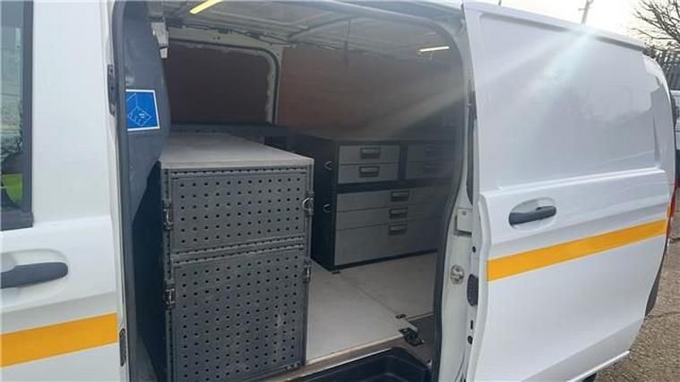 This 2022 Mercedes Benz Vito 116 CDI Progressive with a Mobile reapir unit is a standout example, boasting a full service history with its last service completed on 25th April 2025 at 61158 miles, and it has had only one owner from new. This L3 XLWB model features a powerful 2.0 litre diesel engine delivering 161 bhp, meeting Euro 6 emission standards. For your peace of mind, it comes with a 3 month warranty and a 12 month MOT will be provided upon purchase, ensuring its roadworthiness. With an impressive cargo volume of 6600 litres, this Vito offers exceptional carrying capacity, making it a practical choice for a variety of business needs. The 161 bhp engine output indicates a strong performance compared to other vehicles in its class, while the Progressive trim level ensures a well equipped and comfortable driving experience. This Mercedes Benz Vito represents a reliable and capable option for those seeking a premium commercial vehicle.