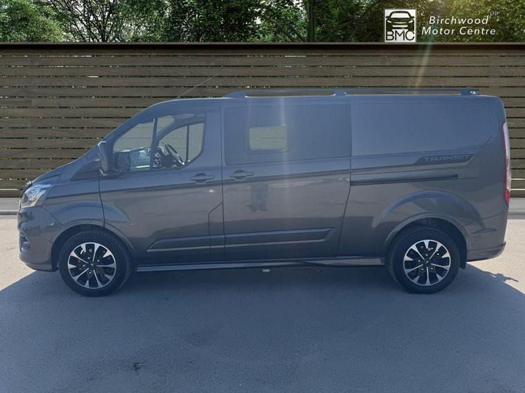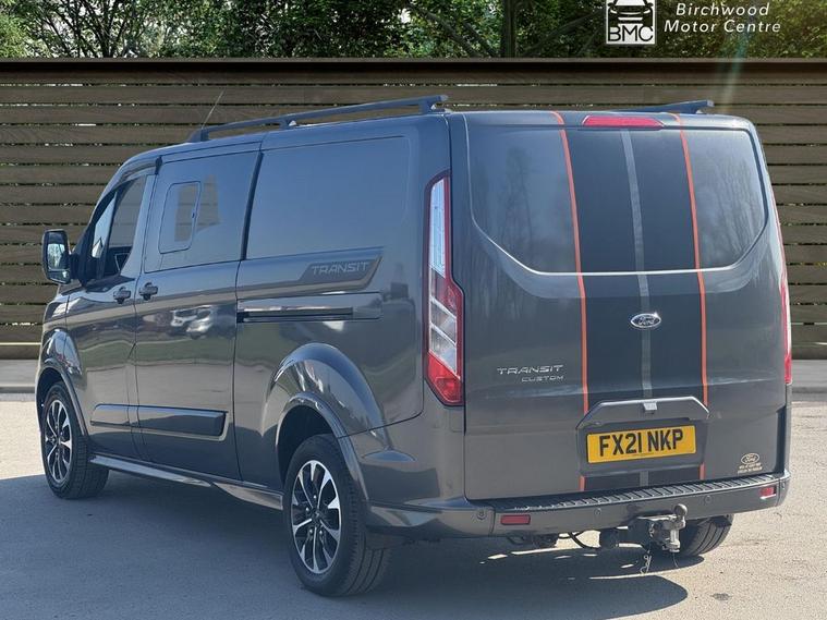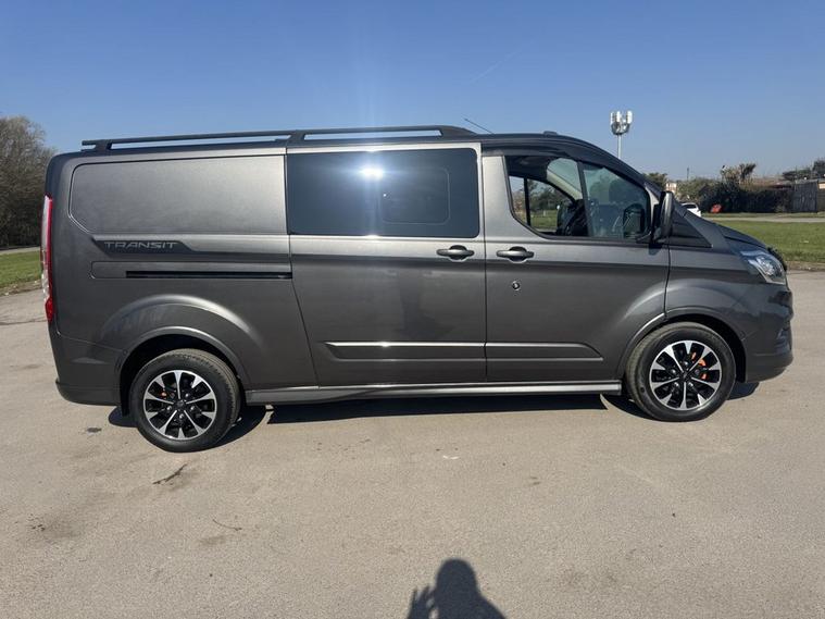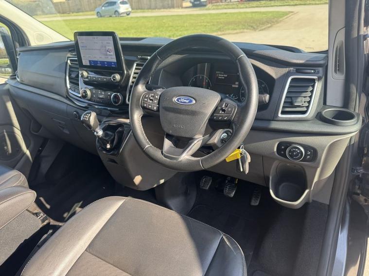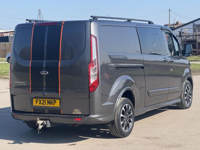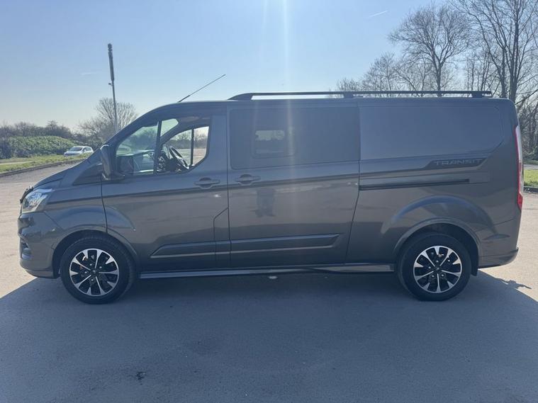This 2021 Ford Transit Custom 2.0 320 EcoBlue Sport Crew Van L2 H1 Euro 6 (s/s) 5dr is a superb example, having been owned by only one person since new. This 320 Sport derivative, finished in the Sport trim, boasts a powerful 2.0 litre diesel engine and meets Euro 6 emissions standards. It comes equipped with a Visibility Pack Premium, featuring a rear camera for easier parking, and Seat Pack 32 which includes heated seats for added comfort. The van also benefits from Lane Keeping Alert and Automatic Headlights with a Follow Me Home function, enhancing safety and convenience. With an impressive engine power of 182 bhp, this Transit Custom offers a dynamic driving experience, outperforming many similar vehicles. Its fuel economy is also a strong point, achieving up to 42 mpg, making it an economical choice for your business needs. Furthermore, this model has a substantial towing weight of 2800 kg, providing versatility for a range of tasks. The front manual air conditioning ensures a comfortable cabin environment in all conditions.