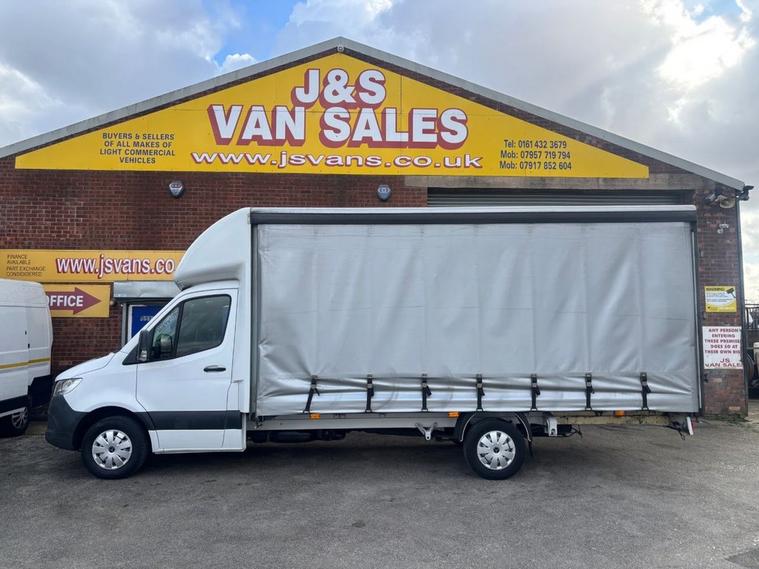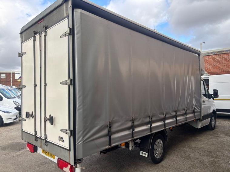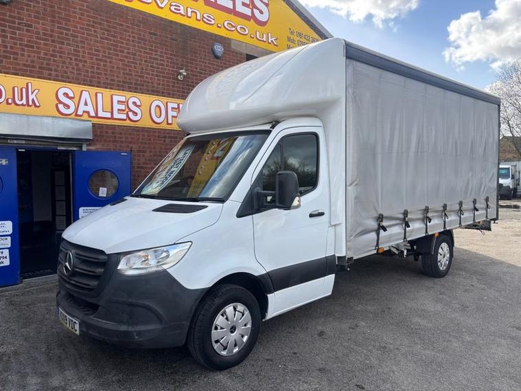 MERCEDES SPRINTER 314 CDI 141 BHP 2019 /19 REG L5 EXTRA LONG WHEEL BASE CURTAIN SIDER BOX 17 FOOT 8 INC LONG BARN REAR FULL SIZE DOORS LONG BODY FITTED 7 STRAPS WHITE CAB / GREY CURTAINS CLEAN TIDY 3500 KG TONNER 1 LARGE PLC OWNER FROM NEW 194K MLS SERVICE RECORD DRIVES A1 CLOTH 3 SEATER CAB AREA HEATED WINDOW SCREEN ELEC PACK 6 SPEED DIESEL EURO 6 BIG SIZE BODY WITH THE OVER CAB LOAD AREA ALSO MORE LUTON BOX VANS IN STOCK dealer's website BENZS /MERCEDES / VW /CRAFTER /IVECO /MASTER /FORD / SALES NEIL BRAD SSHAUN OR ALLIYAH OPEN 7 DAYS A WEEK STOCKPORTS LARGEST NEW AND USED VAN DEALER EST 1985 ALL MAKES IN STOCK BIG OR SMALL WE STOCK THAM ALL PX WELCOME ALL CARDS WELCOME SAT NAV TO KENWOOD RD REDDISH STOCKPORT SK56PH