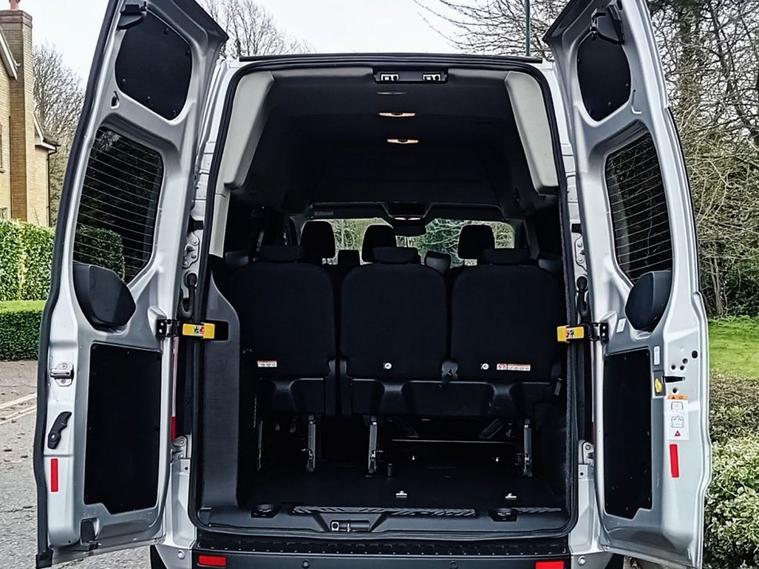 Nine Seats Long Wheelbase L2 High Roof H2 Automatic Gearbox Low Mileage OVER 70 MINIBUSES IN STOCK NATIONWIDE DELIVERY AVAILABLE Air Conditioning Cruise Control 16in Steel Wheels 2 Interior Grab Handles 3 Button Key Fob ABS - ESP - HLA and FBS Automatic Headlights - Follow Me Home Automatic Headlights with Rain Sensing Wipers B Pillar Assist Handle Black Exterior Door Handle Black Lift-Decklid Exterior Handle Body Coloured Exterior Mirror Finish Body Coloured Plastic Front Bumpers Closed Header Mounted Package Tray Colour Keyed Exterior Pack 2 Complete Grille with 3 Bars Complete Molded Headliner Complete Rubber Inside Floor Cover Configurable Unlocking - Config 2 Courtesy Lights - Header Courtesy light - 2nd Row Reading Lights Courtesy light - 3rd Row Reading Lights Day-Night Inside Mirror Daytime Running Lights Level 2 Door - Auto Relocking Enabled Door Entry Remote Control Unit - 2 Fobs Door Open Tyre Carrier Drop Driver Airbag Restraint Driver Non-Illuminated Sunvisor Dual Note Electric Horn Electric Rear Window Defroster Electric Windshield Defroster Electrical Outlet Electrically-Operated Front Windows with One Touch Drivers Embedded Modem Emergency Brake Light Flashing Fixed 2nd Row L-H Side Window Fixed 2nd Row R-H Side Window Fixed Rear Window - Cargo Door or Liftgate Floorwell Lights Ford Easy Fuel System Front Active Seat Belts Front Fog Lights Front Headlamp Leveling Front Parking Aid Front Seat Belts with Pre-Tensioners Front Splash Guard - Mud Flaps Headlights - Halogen Projector Headlights - Quad Beam Heater - PTC High Mounted Stop Lamp ICE Feature Pack 21 Interior Trim Accent Pack B Kerbside Side Load Door Load Compartment - Tie Down Loops x4 Load Compartment Light Lockable Glovebox Low Series Cluster Mechanical Parking Brake Mini Overhead Console Molded Gear Shift Knob Non Locking Wheel Nuts Partial Body Colour Rear Bumper Passenger Airbag Restraint Passenger Non-Illuminated Sunvisor Power Assisted Steering Power Door Deadlocks - Shielded Power Fold Back Dual Power Mirrors Power Lock Group Privacy Glass Rear Cargo Door Check Arms - 90 Degree Rear Cargo Hinged Door Rear Coat Hook Rear Door Edge Reflector Strip Rear Power Point Plug Rear Seat Belts Rear Seat Pack 6 Rear Seats - Second Row - Triple Wide Seats - 2+1 Rear Seats - Third Row - Triple Wide Seats - 2+1 Rear Splash Guards Restricted Side Load Door Opening Reverse Parking Aid Seat Belt Reminder System - Drivers and Front Passengers Seat Pack 13 Side-Rear Door Trim Panel - Level 1 Single Fuel Tank Spare Wheel - Conventional Speed Control Standard Duty Battery Standard Duty Suspension Starter Equipment -20 Degrees C Steering Column - Rake and Reach Adjustment Steering Wheel - Leather-Trimmed Tool Kit Transmission Linked Rear Wash Wipe Trip Computer Two Stage Unlocking Tyre Pressure Monitoring System Visibility Pack - High Washer Tank Level Warn Lamp Wheel Covers - Full Wide Bodyside - Grey Moulding Windows - Fixed 3rd Row - RHS and LHS Wipers - Front Variable Intermittent