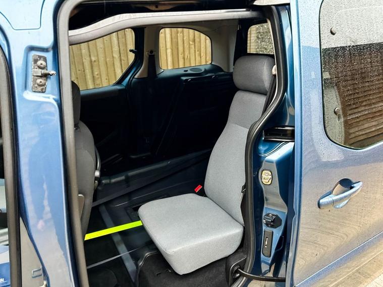 This Peugeot Partner Wheelchair Accessible Vehicle (WAV) seats 3 passengers (2 Front and 1 Rear), with a Wheelchair Ramp, Wheelchair Winch, Air Conditioning, Electric Windows, Rear Parking Sensors, Power Steering, Remote Central Locking, Tinted Rear Windows and Service History.