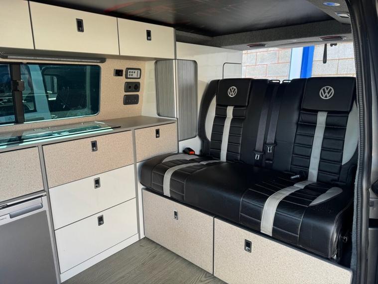 +++Please see our video+++, VIEWING BY APPOINTMENT ONLY, CALL DARRIN ON 01215402051, SOURCE - Here at Silver Birch Motor Company, we have managed to secure this lovely Transporter T32 4 Berth Camera, converted by bespoke Styleline Conversions. Service History- The Van was originally Purchased as a part exchange directly from a local Mercedes Dealer, where it was then converted to a stylish top spec Camper.++++++++The Van Finished in Indium Grey Metallic, with the following extra spec from the factory. Tailgate, Electric sliding door, LED headlights, Heated windscreen, Reversing Camera, Ghost Immobiliser fitted for extra security, front and rear parking sensors, 2 keys, 17 Alloys alloys with new swamper tyres, FSH, with Timing belt, Waterpump and DSG service at 44369 miles. The bodywork is in excellent condition++++MOT August 2026, with no advisories++++++The Conversion, ++++++RIB Crash tested bed with Isofix and two seatbelts, Solar panel, Swivel Dual passenger and drivers seat front seats, upgrade touch screen sound system, Webasto Night Heater, Tule Omnistor Awning Manual opening, Dometic Fridge Freezer, Dual Gas Hob, Stunning grey and white cabinets, with plenty of storage, Dometic sink, Full black and Grey leather seats (5 seater) with VW stitched into the head rests. Amazing Condition and ready to drive away today. ++NO VAT TO PAY++