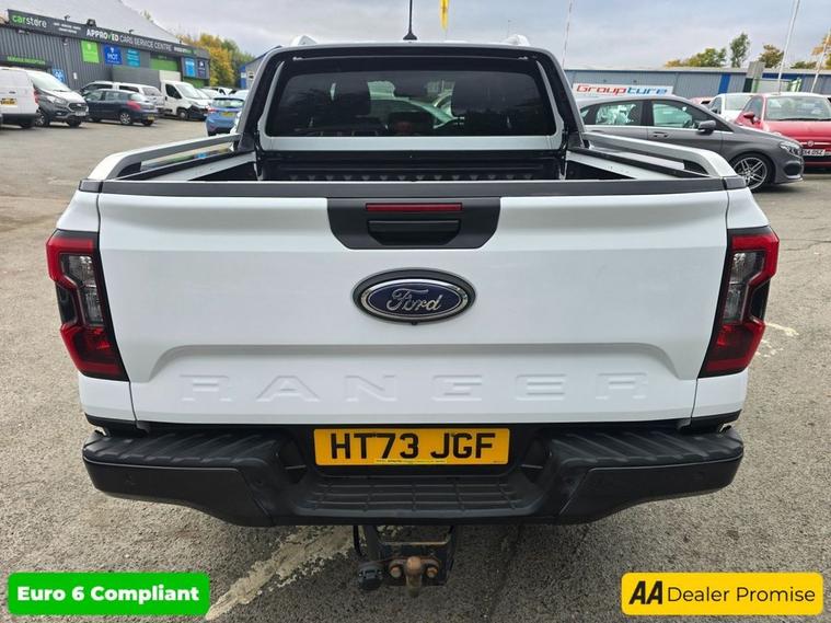 This 2023 Ford Ranger TD Wildtrak presents an exceptional opportunity with its remarkably low mileage of just 14, 500 miles and a single owner from new. This Four Wheel Drive pickup is powered by an efficient 2.0L Diesel engine, meeting Euro 6 emissions standards. It boasts a range of desirable features, including a heated steering wheel for those colder mornings, passive keyless entry and start for ultimate convenience, and advanced LED reflector headlights for superior visibility. The Technology Pack 20 enhances your driving experience with adaptive cruise control, automatic headlights, and comprehensive front and rear parking sensors complemented by a rear camera. Further enhancing comfort and practicality, the Front Seat Pack 7 ensures both driver and passenger can enjoy heated seats. These carefully selected features, combined with the vehicles excellent provenance, demonstrate a level of specification and care that sets this Ranger apart from others on the market. This Wildtrak variant offers a compelling blend of robust capability and refined comfort, making it an ideal choice for both work and leisure.