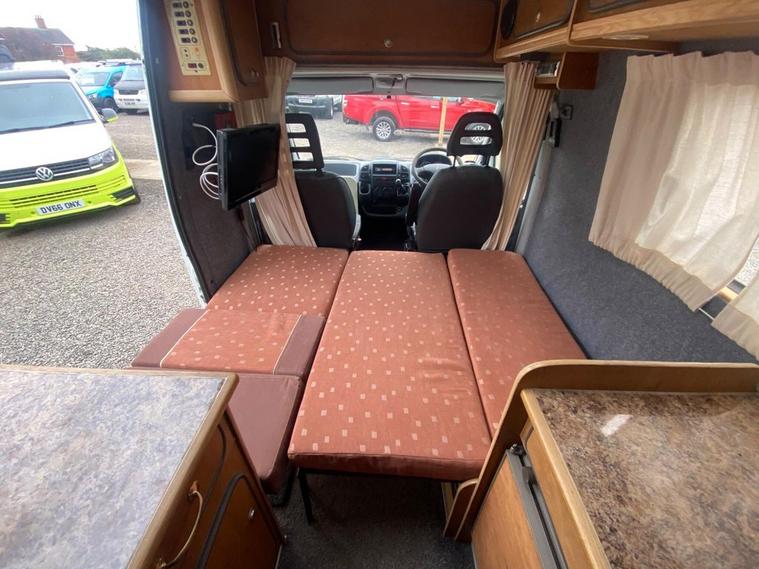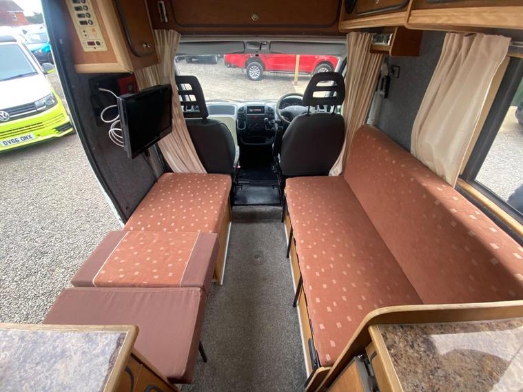 Podium PCL is delighted to present this exceptionally well-crafted and robust motorhome, engineered for reliability and refined comfort. Powered by a dependable 2.2L diesel engine, this vehicle offers both performance and peace of mind for every journey. Designed with thoughtful attention to detail, this elegant 2-berth motorhome features twin swivel seats and a beautifully appointed rear lounge, which effortlessly converts into a spacious double bedperfect for relaxing or entertaining. The interior showcases high-quality wooden cabinetry throughout, providing generous storage while maintaining a warm, sophisticated finish. Above, dual skylights and expansive solar panels enhance both natural light and off-grid capability. Key Features & Amenities Efficient and reliable 2.2L diesel engine Spacious 2-berth layout with swivel seating Rear lounge converting into a comfortable double bed Roof-mounted solar panels for enhanced independence Dual skylights for a bright, airy interior Premium wooden shelving with extensive storage Fully Equipped Kitchen 4-burner gas hob Integrated Thetford oven Large sink with modern mixer tap Electrolux fridge and freezer Washroom & Utilities Rear washroom with toilet and sink Provision to install a shower if desired Truma Ultrastore hot water system Technology & Extras Fully integrated electrical system with central control panel External power sockets Fitted sound system Window blinds throughout for privacy and comfort Towbar fitted for added versatility Maintenance & Peace of Mind Cambelt replaced at 90K Recently serviced Supplied with a brand-new MOT The Experience This motorhome offers a seamless blend of durability, comfort, and understated luxuryideal al your travel needs. Visit Podium PCL and discover automotive excellence today. Come See Us: The Old Wood Yard Forest Road, Hanslope Milton Keynes, MK19 7DE 01908906243 ( WHATSAPP) INFO dealer's website dealer's website Opening Hours MonSat: 9:00 AM 6:00 PM Sun: 9:30 AM 4:00 PM Podium PCL