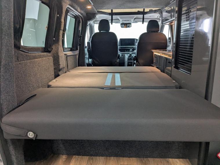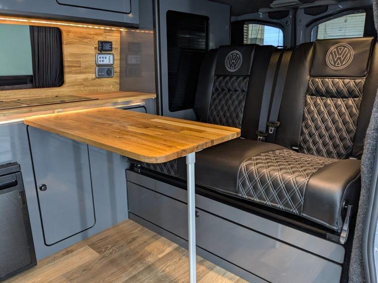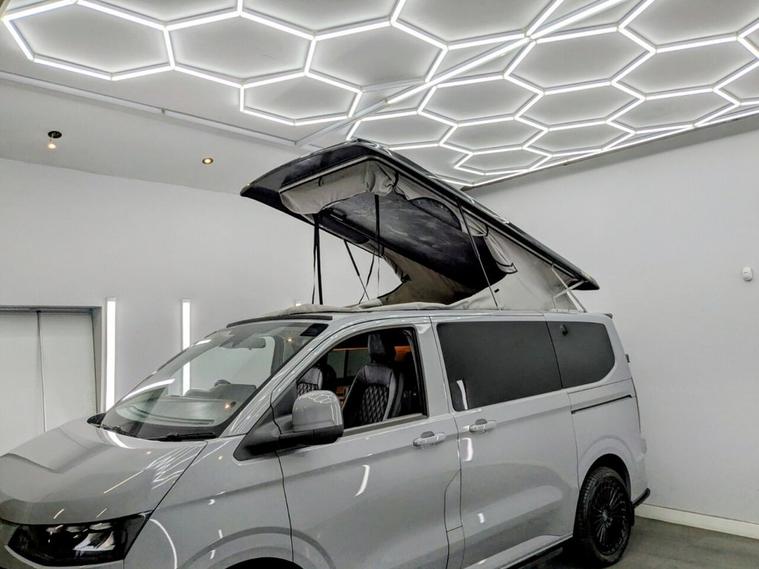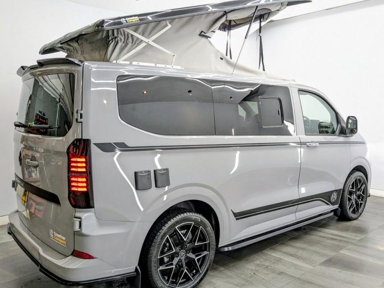 Get ready for adventure with this stunning, brand new camper conversion currently in build and crafted to the highest specification. Stoner Grey with Custom Graphics Custom leather seats Skyline roof Side bars 20 inch load rated alloy wheels Front splitter Night heater Air conditioning Custom worktop Custom units Custom LED interior lighting Water tank Rib bed with Isofix, fully crash tested USB and 230v sockets Refrigerator with freezer compartment Bluetooth telephone connectivity Solar panel Parking sensors Rear camera Privacy glass all round This bespoke Intensive Red camper blends exceptional craftsmanship with modern functionality, delivering the ultimate home-from-home experience. Built with care, passion, and attention to detail, this vehicle promises a unique combination of style, comfort, and performance.