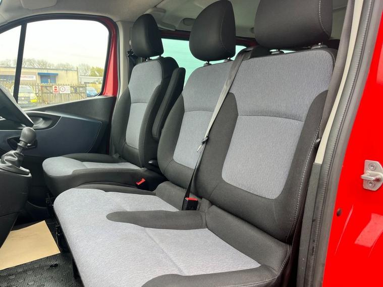 The Vauxhall Vivaro Combi Van (Double Cab) is a highly rated, car-like and efficient medium van featuring a 9-seat configuration. It is renowned for its refined whisper diesel engines, comfortable ride and all-round practicality. It is an excellent, reliable used choice and would be perfect for both business or recreational use. This ones finished in Flame Red and is in excellent condition both inside and out with less than 40, 000 miles from new. Access for the rear passengers is a breeze thanks to twin sliding doors and the sixeable boot area has a handy tailgate as opposed to barn-style doors. Its also nicely equipped with features including air conditioning, Bluetooth connectivity, fingertip audio controls and reverse parking sensors. The reliable 1.6 CDTi engine coupled with a 6 speed manual gearbox is fuel efficient and ULEZ compliant.