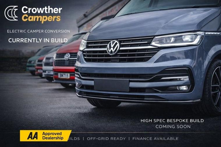ELECTRIC VW e-TRANSPORTER CAMPER VAN CONVERSION HIGH SPEC BESPOKE BUILD NEXT GENERATION CAMPING This is not just a campervan this is a fully bespoke, high-spec conversion built on a brand new electric platform, designed to redefine how campervans look, feel, and perform. Based on the Volkswagen e-Transporter T32 65kWh Commerce Pro, this van combines cutting-edge electric driving with a premium handcrafted camper conversion, offering a completely modern take on van life. Finished in sleek Grey, this example has covered just 350 miles and will be professionally converted to our signature high-end specification, featuring custom leather seating, full soft-close bespoke furniture, RIB bed with ISOFIX, night heater, camper kitchen with microwave and fridge freezer, water system with pressurised rear shower, LED ambient lighting, USB and 230V sockets, and a clean, functional layout designed for real-world use. It will also benefit from a VanLidz roof with integrated solar panel, enhancing its off-grid capability. This is our first ever electric campervan conversion and is currently in build. Externally, the van will sit on upgraded 20 load-rated alloy wheels, complemented by side bars, front splitter, privacy glass, parking sensors and Bluetooth connectivity, giving it a strong road presence to match its premium build quality. Extended warranty available for added peace of mind. Finance available up to 15 years