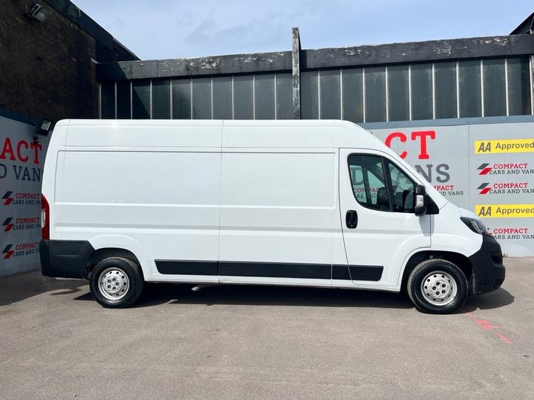 2023 Peugeot Boxer 2.2 BlueHDi 335 Professional Premium+ L3 H2 a serious workhorse built for maximum practicality and immediate business use. The long wheelbase, high roof design offers an impressive 13m load space, twin rear doors and sliding side access, making loading bulky items simple and efficient . With a payload of around 1, 495kg, its ideal for trades, deliveries or fleet work . Professional Premium+ spec includes touchscreen navigation, Bluetooth, air conditioning, cruise control, parking sensors and a full steel bulkhead, ensuring comfort and usability on the job . Powered by a strong 2.2 BlueHDi 140ps engine, it delivers reliable performance with around 40 mpg, balancing power with efficiency . A high-capacity, well-equipped van thats ready to go straight to work.