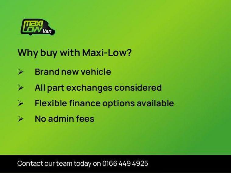 Excellent volume, outstanding payload, high specification. Apple car play, electric windows, comfort seating. Load-lok, reversing camera with night vision, barn doors, lightweight reinforced panels, non-slip load floor, wipe clean interior, kick plates to side walls (reinforced), PIR LED light, 1 set aluminium load-lok rails with straps, 3D aerodynamic roof pod with colour coded side wings, deflection system colour coded wheel arches, powder coated external metalwork, one-piece anti -slash aero dynamic roof with built in rear vortex, rear safety step with non slip tread plate finished in high visibility yellow. These bodies built and designed by Maxi-Low (A Radius Vehicle Solutions Company) and are the original low floor body. Bigger, lighter, safer and stronger, these benefit from our trademark build and design features which include panels that can withstand up to 1.2t of impact, and one piece panels that can be plastic fusion welded to reduce in-life replacement panel costs. Built on premium Volkswagen chassis these vehicles are covered by a 3 year, 100k mileage warranty. Available and in stock to drive away now. 2600x4500x2044Finance options available..