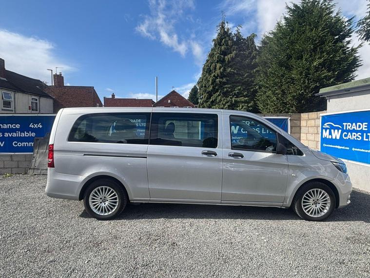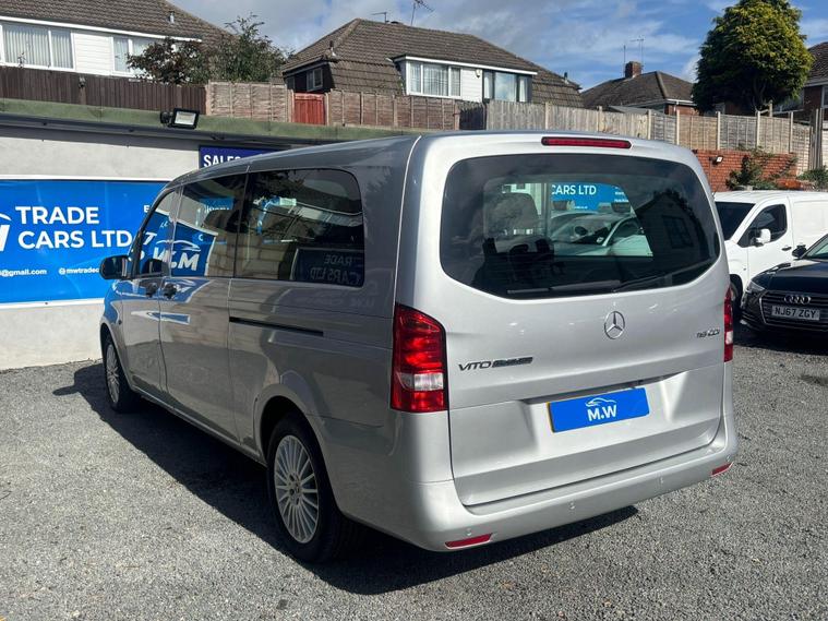 ULEZ, 9 SEATS, ECTRA LONG WHEEL BASE, CAT S, ANY INSPECTION WELCOME, FINANCE OPTIONS AVAILABLE REPRESENTATIVE EXAMPLE 9.7 APR, WE ARE A CREDIT BROKER NOT A LENDER FOR FURTHER INFORMATION PLEASE NAVIGATE TO OUR WEBSITE www. dealer's website AND CLICK ON THE FINANCE TAB. OR CONTACT US ON 01384670618.Discover this exceptional 2019 Mercedes Benz Vito 119 CDI SELECT Tourer, a premium choice for those seeking reliability and comfort. This L3 XLWB model is powered by a robust 2.1 litre Euro 6 diesel engine, paired with a smooth G Tronic automatic transmission and rear wheel drive. The SELECT trim level ensures a well equipped experience, featuring essential modern conveniences.This Vito boasts impressive technology, including Bluetooth connectivity for both hands free calls and audio streaming, allowing you to stay connected on the go. For your comfort, it is fitted with Tempmatic air conditioning, providing automatic temperature control for a pleasant cabin environment. The Headlamp Assist feature automatically activates the headlights, enhancing safety and convenience during varying light conditions. These features collectively demonstrate the thoughtful design and advanced capabilities of this Mercedes Benz Vito..