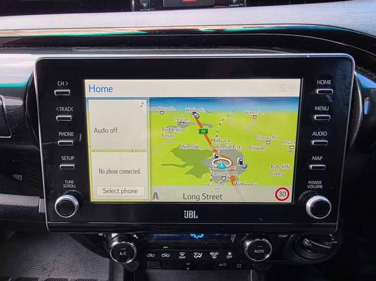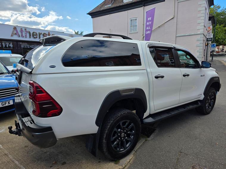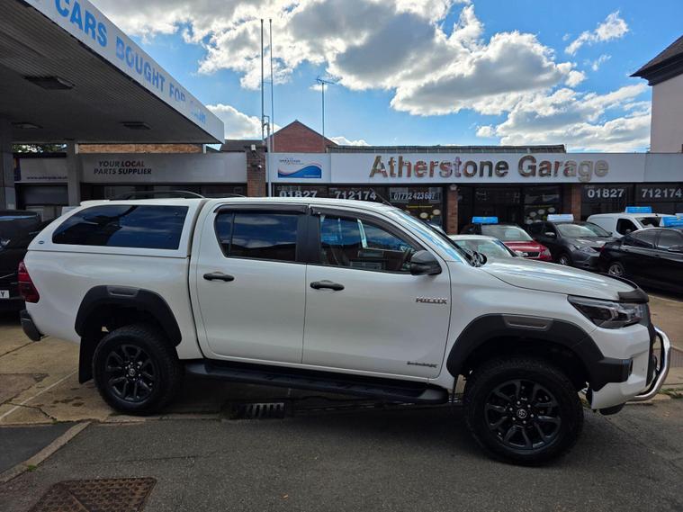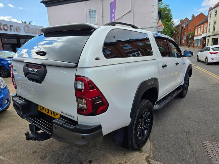 This 2020 Toyota Hilux Invincible X is a robust and capable vehicle, presented in excellent condition. As a 2.4 D-4D Invincible X Auto 4WD Euro 6 (s/s) 4dr, it boasts a powerful 2.4 litre diesel engine and a reliable four wheel drive system, making it well suited for a variety of tasks. This model comes equipped with a rear view camera for easier parking, a smart entry and start system for keyless convenience, and adaptive cruise control for a more relaxed driving experience. You'll also appreciate the integrated Bluetooth connectivity for hands free calls and music, and automatic air conditioning to maintain a comfortable cabin temperature.The Invincible X trim level signifies a premium offering within the Hilux range, and this particular vehicle highlights its efficiency with low CO2 emissions. Its substantial 3200 kg towing weight capacity further demonstrates its versatility, allowing you to confidently transport trailers or other loads. These features collectively indicate that this Toyota Hilux offers a superior blend of performance, technology, and practicality compared to many other vehicles in its class..