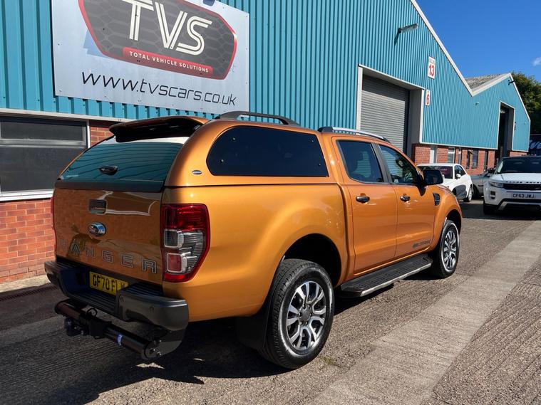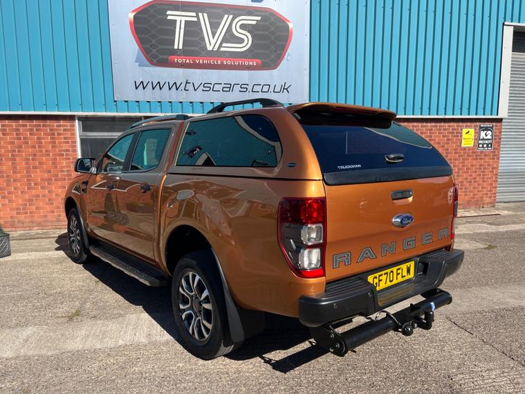 This 2020 Ford Ranger Wildtrak is a robust and capable pickup truck, presented in excellent condition. Powered by a 2.0 litre EcoBlue diesel engine, this Four Wheel Drive model delivers an impressive 210 bhp, making it a strong performer for both work and leisure. The Wildtrak derivative boasts a Euro 6 compliant engine with low CO2 emissions, and it is equipped to tow up to 3500 kg. Notable features include passive keyless entry and start, heated front seats for driver and passenger comfort, and front and rear parking sensors to aid manoeuvrability. LED headlights provide excellent visibility in all conditions.The Ford Ranger Wildtrak stands out with its combination of power, efficiency, and advanced features. The 210 bhp output from the 2.0 litre EcoBlue engine signifies a higher performance level compared to many other vehicles in its class. Furthermore, the inclusion of LED headlights and a comprehensive parking aid system, encompassing both front and rear sensors, demonstrates a commitment to driver convenience and safety that elevates its appeal above standard offerings..