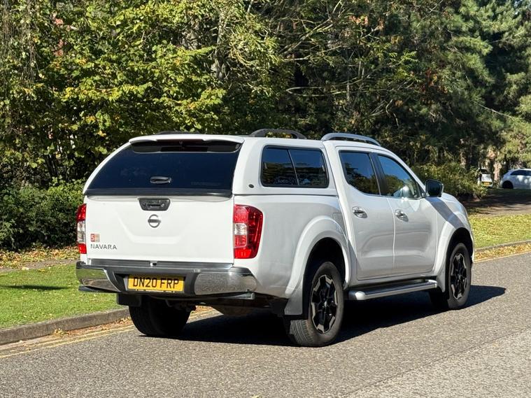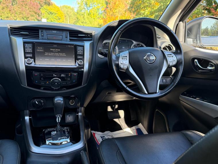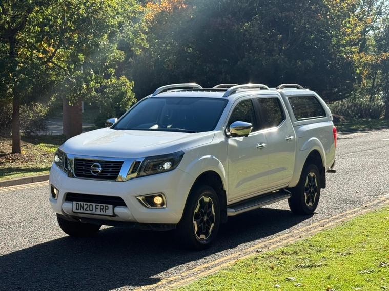NO VAT + ELECTRIC SLIDING SUNROOF + 360 CAMERAS + REAR CANOPY + FULL BLACK LEATHER INTERIOR + FRONT ELECTRIC HEATED SEATS + CRUISE CONTROL + SAT NAVIGATION + APPLE CAR PLAY + CLIMATE CONTROL + TOUCHSCREEN INFORMATION SCREEN + BI-XENON HEADLIGHTS + FRONT LED DAYTIME LIGHTS + RARE TEKNA MODEL WITH SUNROOF & REAR CANOPY + EURO 6 + PARKING SENSORS + ROOF RAILS + SIDE STEPS This 2020 Nissan Navara Tekna is a robust and capable vehicle, ready for any challenge. Featuring a powerful 2.3L dCi diesel engine and a reliable four wheel drive system, this Euro 6 compliant model offers excellent performance. The Tekna trim level ensures a premium experience, with notable features such as LED headlights with a distinctive black bezel inlay, and the convenience of Nissan Intelligent Key for keyless entry. Stay connected and entertained with Bluetooth audio streaming, and manoeuvre with confidence thanks to the integrated rear view camera.Enjoy a comfortable journey with the automatic dual zone climate control, ensuring the perfect cabin temperature for all occupants. This Navara is designed for practicality, boasting an impressive towing weight of 3500 kg, making it ideal for towing trailers or caravans. With a fuel economy of 38 mpg and low CO2 emissions, this Nissan Navara demonstrates efficiency that sets it apart from other vehicles in its class, offering a compelling blend of power, comfort, and economy..