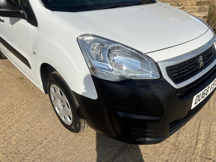 The Peugeot Partner 1.6 BlueHDi 855 Professional L1 5dr Stop & Start is a small panel van with a 1.6-liter diesel engine, a manual transmission, and a length of L1. It features a 98 bhp engine, a top speed of 101 mph, and a 0-62 mph time of 14.5 seconds. The van has a gross vehicle weight of 2185 kg and is available in various colors. With only 55660 miles on the clock, this 2018 Peugeot Partner offers exceptionally low mileage for its age , and comes with a long Mot , 2 Keys and a recent oil change service . This Partner, a BlueHDi 855 Professional L1 5dr Stop & Start derivative, comes in a Professional trim and is powered by a 1.6L diesel engine, meeting Euro 6 emission standards. It also features a Start/Stop system and 15in steel wheels with black hub caps. The vehicle's MOT is valid until September 2025, and it has a clear vehicle history check, with partial service history.This Partner stands out with its impressive fuel economy of 67 mpg, meaning fewer trips to the pump and more money in your pocket compared to similar vehicles. The low CO2 emissions contribute to reduced road tax and a smaller environmental footprint. With a payload weight of 854 kg and an engine producing 99 bhp, this vehicle is ready to handle substantial loads..