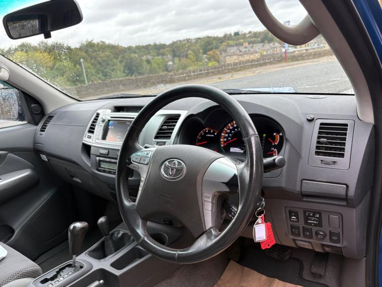 This 2013 Toyota Hilux 3.0 D-4D Invincible Auto 4WD Euro 5 4dr is a robust and reliable choice for any adventure. Featuring a powerful 3.0 litre diesel engine and a capable four wheel drive system, this Invincible trim model is built to tackle challenging terrains. Notable features include dusk sensing headlights that automatically illuminate when light levels drop, and automatic air conditioning to maintain a comfortable cabin temperature. For added convenience and safety, it is equipped with a rear view camera that displays on the Toyota Touch system, aiding with parking manoeuvres.The Hilux Invincible stands out with its impressive specification, indicating a superior driving experience compared to other vehicles in its class. Its low insurance group rating offers an attractive benefit for owners, making it a cost effective option. This particular model combines practicality with advanced features, ensuring both capability and comfort for everyday use and more demanding journeys..