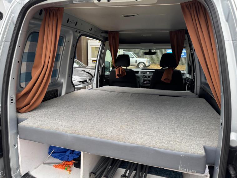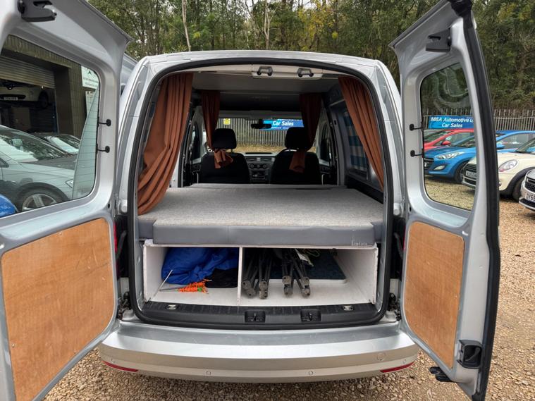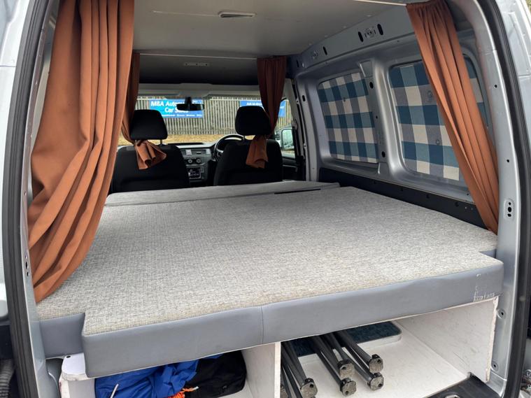 2017 VOLKSWAGEN CADDY 2.0 TDI C20 HIGHLINE MICRO CAMPER VAN, This lovely little van is direct from spaceship uk rentals, The van is a EURO 6 so is ULEZ COMPLIANT, well maintained and has super mot till August 2026, Very nice Bright Silver metallic paint, side Door, the twin rear doors with windows, simplistic basic micro camper van, large bed plenty storage tie and clip on awning, portable stove, very easy to ad more amenities your self, ideal for weekends away camping or fishing trips so not been used for work, a cracking opportunity for someone thinking along the same lines although everything’s is all easily removed with no damage if you just require a normal van, this is the right time of year to buy these in March you wouldn’t get near one a bargain for someone at £6995 NO VAT TO PAY.
