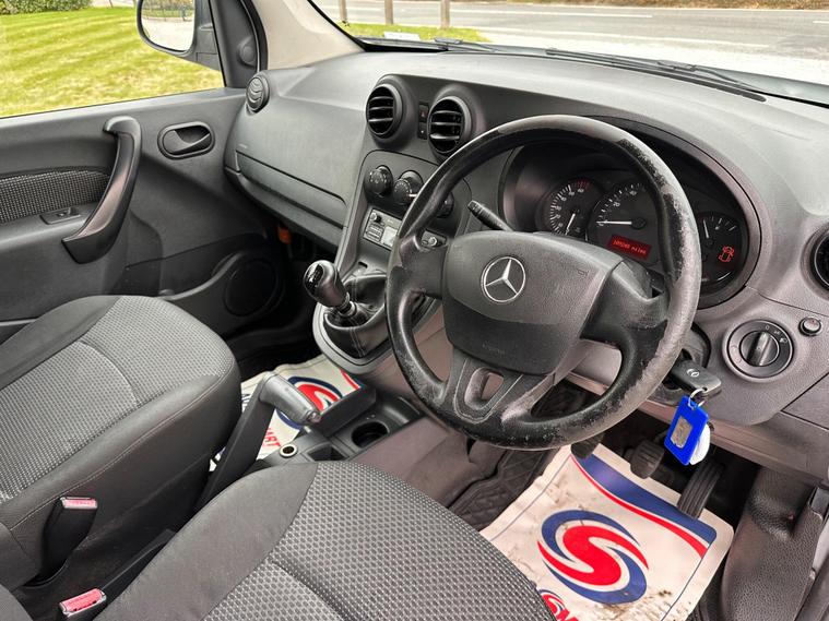 This 2014 Mercedes Benz Citan 1.2 112 BlueEfficiency L2 Euro 5 is a well maintained example of this versatile vehicle. It features a responsive 1.2 litre petrol engine delivering 112 brake horsepower, making it a capable performer. For your convenience and safety, this Citan is equipped with a Bluetooth interface for hands free telephone calls and also offers Bluetooth connectivity for audio streaming, ensuring your journeys are both connected and enjoyable.The 112 variant of the Citan stands out with its efficient BlueEfficiency technology and the inclusion of the start stop system, which helps to reduce fuel consumption in urban driving. This combination of a strong engine, practical features, and efficiency enhancements means this Mercedes Benz Citan offers a superior driving experience compared to many other vehicles in its class..