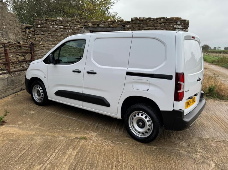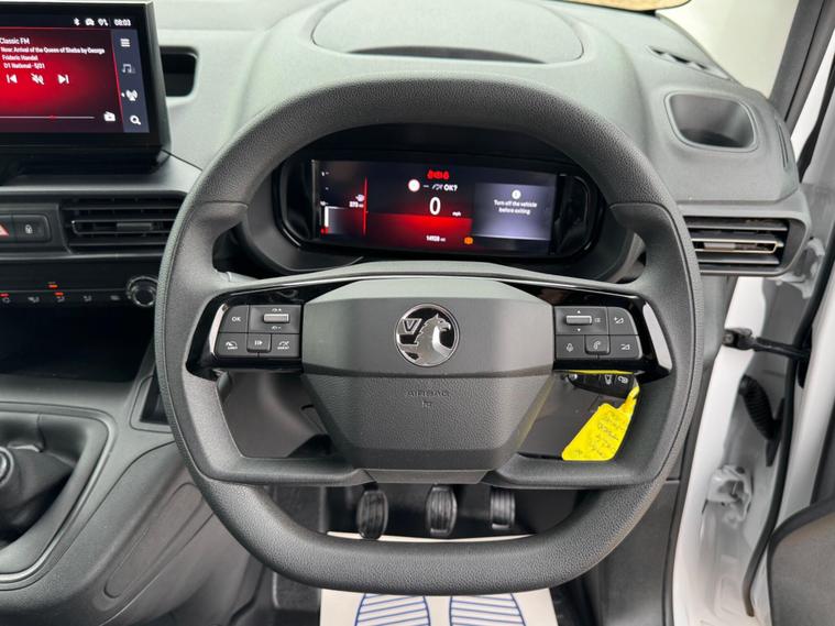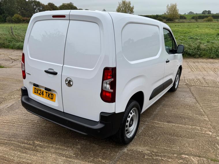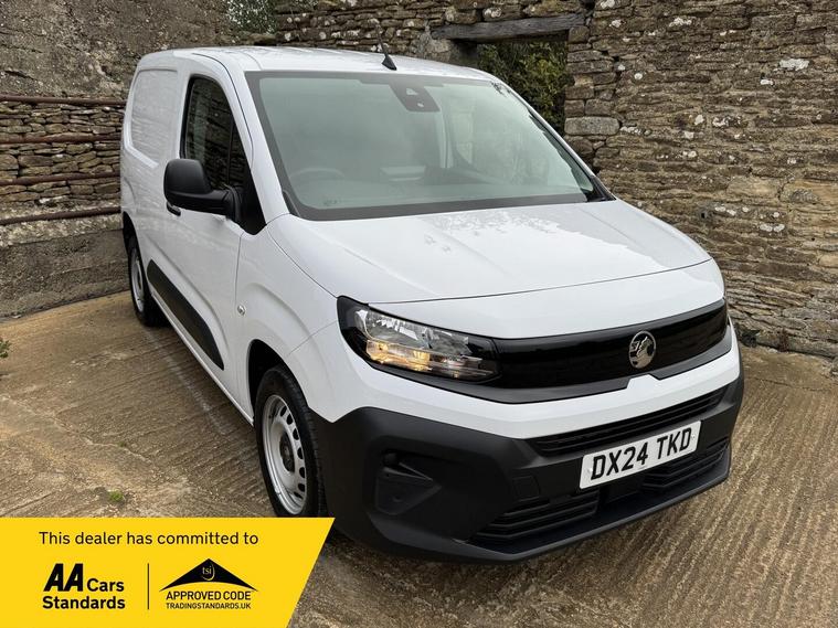 The Vauxhall Combo 1.5 Turbo D 2300 Prime Panel Van SWB Euro 6 (s/s) 5dr is a short-wheelbase, panel van with a 1.5-litre turbo diesel engine, 6-speed manual gearbox, and a ''Prime'' trim level. Key features include Euro 6 emissions standards, start/stop functionality, 102 PS (100 ps) engine power, air conditioning, cruise control, rear parking sensors, and a 5-door configuration (with one side-access sliding door). It's a practical van designed for carrying cargo, featuring a steel bulkhead and flexible load space. This 2024 Vauxhall Combo Turbo D 2300 Prime Panel Van SWB Euro 6 (s/s) 5dr boasts a full service history and has had only one owner, ensuring excellent provenance. This reliable panel van is equipped with a 1.5 litre diesel engine and meets Euro 6 emission standards. For your convenience, it features rear parking distance sensors, automatic lighting control, and air conditioning. The MOT is valid until June 2027, and a clear vehicle history check provides further peace of mind, dealer warranty until 3 years old , and a recent service , at 14930 miles on 11/10/2024 .This Vauxhall Combo stands out with its impressive fuel economy, achieving up to 54 miles per gallon, and its low CO2 emissions. It offers a substantial payload capacity of 982 kg, making it a practical choice for your business needs. Furthermore, its low insurance group rating indicates that running costs are kept to a minimum, offering a more economical option compared to similar vehicles..
