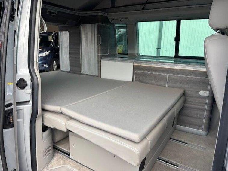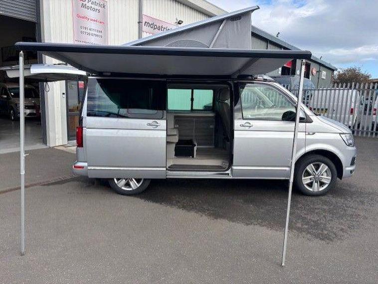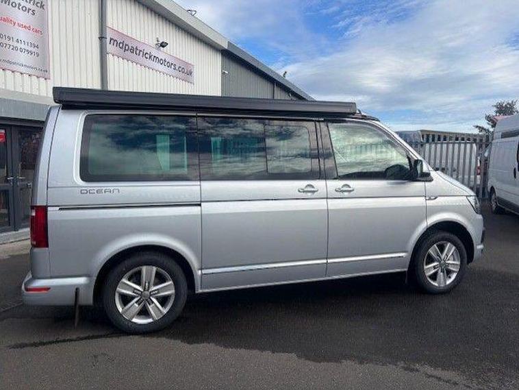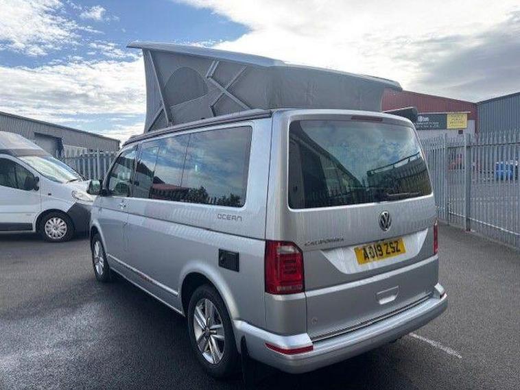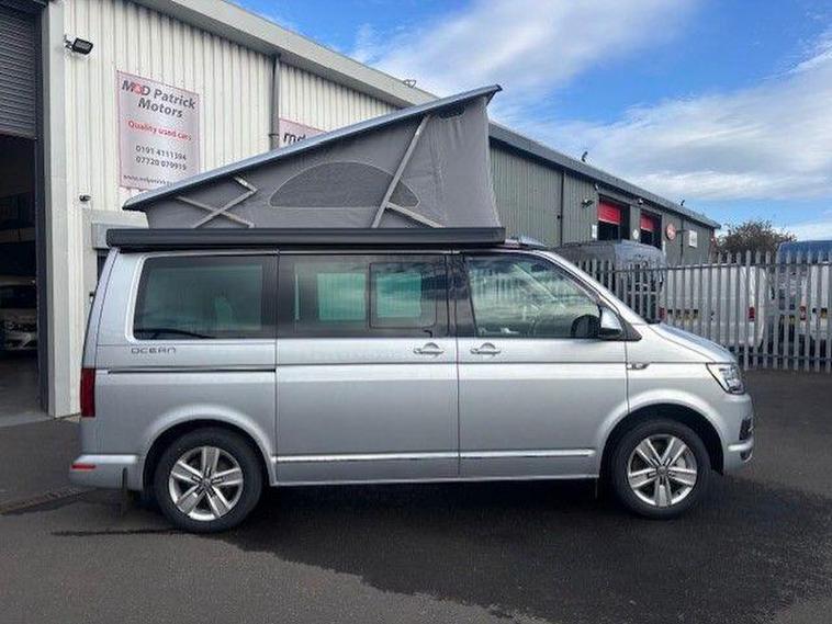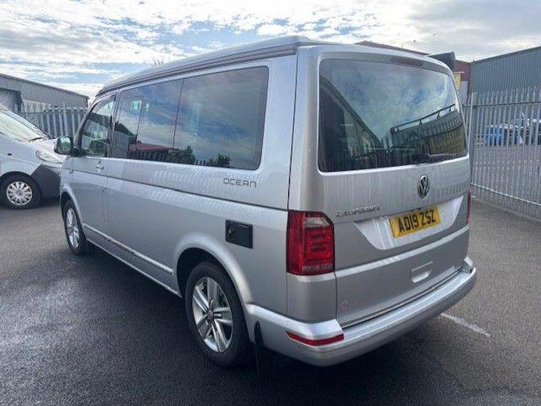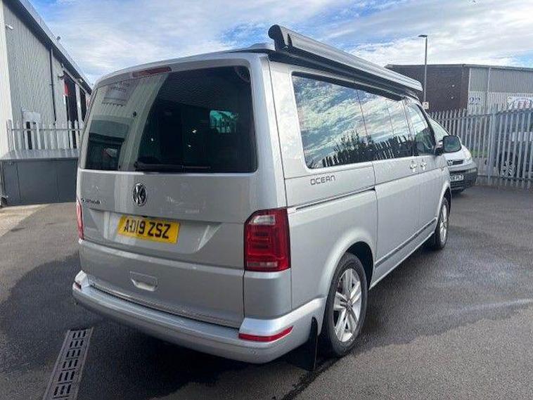 This 2019 Volkswagen California TDI Ocean presents a remarkable opportunity with its exceptionally low mileage of just 27, 555 miles and many extras, having been cherished by only one owner. This Euro 6 compliant Ocean trim level comes equipped with a suite of practical features designed for convenience and comfort, including a reversing camera complemented by front and rear parking sensorsr system for effortless parking. Illumination is provided by advanced LED headlights, complete with LED daytime running lights and distinctive red tail lights, enhancing both visibility and style. It has additional great spec including Sat Nav, Bluetooth, Heated front seats, Air Con and Cruise Control. It also has a lovely light seat trim made from alcantara and leather.The California TDI Ocean is thoughtfully designed for adventure and everyday life. Its innovative bed extension with a comfort sleeping mat transforms the interior into a cosy sleeping space, perfect for spontaneous getaways also sleeping for two in the pop top which is operated by the push of a button. It has great camping spec including front swivel seats, rear table, Fridge, Hob, Sink, Full interior blinds, Heater system and even has a Safe to store your valubales. Also included is a rear shower point, Two camping chairs stoed in the tailagte, a camping table neatly stored and a full wind out awning. It is supplied with FSH, 4 new tyres just fitted, 12 months MOT and 6 months Warranty.Please call or email to arrange an appointment on our vehicles. We are a family run company offering you the best personal service when selecting a car, we fully check that all of our cars are HPI clear and carefully select the vehicles which we retail. 6 Months Comprehensive Warranty and 12 Months Free AA Breakdown Cover supplied with our vehicles. We also offer Flexible finance packages to suit your budget, HP and PCP deals available with no hidden documentation fees. We can also arrange delivery anywhere in the UK, please get in touch with us to discuss options..