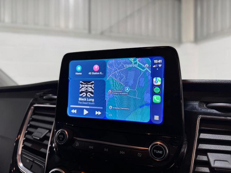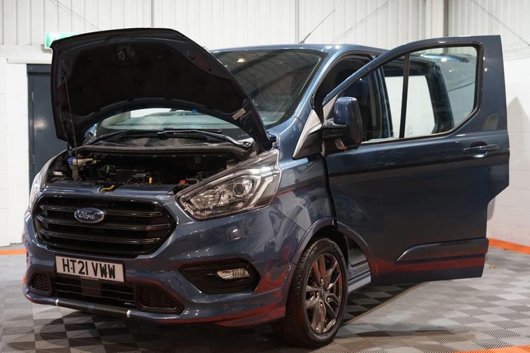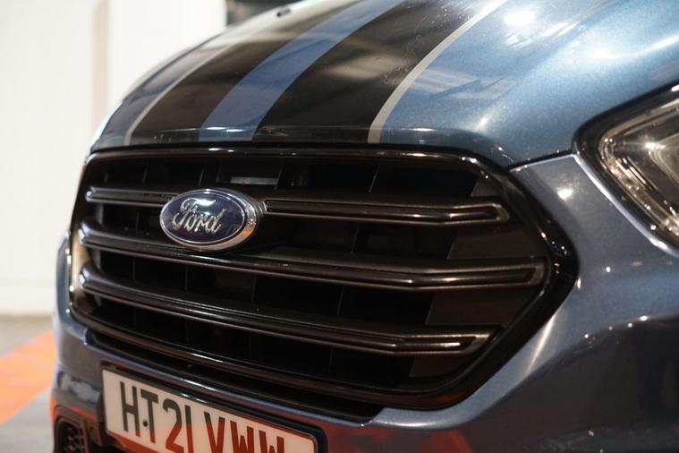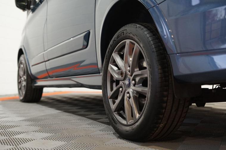 Under the bonnet, the 2.0 EcoBlue diesel engine delivers smooth, efficient power and excellent torque, meeting Euro 6 emissions standards for cleaner, more responsible driving. Whether you’re cruising on the motorway or tackling city routes, the Custom Sport performs with confidence and efficiency.Its exterior design stands out from the crowd, featuring stunning 18-inch alloy wheels, distinctive twin racing stripes, and sporty front and rear bumpers — all finished beautifully in Chrome Blue. This van doesn’t just get the job done; it looks exceptional while doing it.Step inside, and you’re greeted by a car-like cabin that prioritises comfort and technology. The leather and Alcantara seats provide a premium touch and are also heated, ensuring comfort on cold mornings. The driver enjoys a multifunctional steering wheel and cruise control, making long journeys effortless.Technology is front and centre with the integrated infotainment system, featuring Apple CarPlay and Android Auto for seamless smartphone connectivity — giving you access to navigation, music, and hands-free calls at your fingertips.Practicality is also a key strength. The rear ply-lined cargo area is designed for durability, protecting the interior from wear and tear while offering ample space for tools, equipment, or cargo. The addition of rear parking sensors and a reversing camera makes parking and manoeuvring in tight spaces easy and stress-free.Stylish, capable, and packed with premium features, this Ford Transit Custom Sport in Chrome Blue is the ideal choice for professionals who want a van that looks as good as it performs — combining work-ready toughness with everyday comfort and refinement..