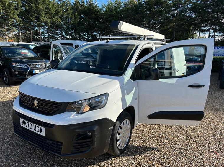 2 KEYS, This 2020 Peugeot Partner van offers exceptional provenance with only one owner from new and a remarkably low mileage of 42, 000 miles for its age. It is a 1.5 BlueHDi 1000 Professional Standard Panel Van SWB, powered by an efficient 1.5 litre diesel engine meeting Euro 6 emissions standards. This vehicle comes with a full service history, with the last service completed on 23 October 2025 at 42, 000 miles, and a clear vehicle history check. For your peace of mind, it includes a 6 month warranty and its MOT is valid until October 2026.The Professional trim level enhances your driving experience with the PEUGEOT i-Cockpit featuring a head up display and compact steering wheel, alongside an 8in capacitive colour touchscreen with DAB radio, Bluetooth handsfree, and USB connectivity. Practicality is key, with air conditioning and height adjustable halogen headlights that automatically illuminate, complemented by daytime running lights and rear parking sensors for easier manoeuvring. This Peugeot Partner stands out with impressive highlights, achieving an excellent fuel economy of 54 mpg and low CO2 emissions, making it more economical to run. Furthermore, its generous 3900 litre cargo volume offers substantial space for your business needs, indicating its superior capability compared to similar vans.12 MONTHS AA BREAKDOWN COVER, EXPERIAN AUTOCHECK CLEAR, ALL PREV MOTs AVAIL We are located in OAK CORNER, MALDON ROAD, Maldon, Essex post code CM9 6TF Open 7 days a week, All major credit/debit cards accepted for deposits only, Finance available, Please visit our website dealer's website to view our latest stock, Part Exchange Welcome - Test Drives Welcome - We Offer a Transparent, Friendly, 'NO PRESSURE' Service , Read Our Reviews, All our vehicles come with 6 months nationwide parts and labour warranty, MALDON CARS AND VANS LTD are authorised and regulated by the Financial Conduct Authority under FRN Reference number 927720. Finance is Subject to status. MALDON CARS AND VANS LTD is authorised as a CREDIT BROKER and NOT A LENDER.