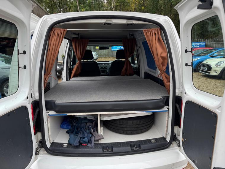 68 REG VOLKSWAGEN CADDY 2.0 TDI C20 TRENDLINE MICRO CAMPER VAN, This lovely little van is direct from spaceship uk rentals, The van is a EURO 6 so is ULEZ COMPLIANT, well maintained and has decent mot till January 2026 Timing belt and new clutch in December 2024, Very nice Bright White paint, side Door, the twin rear doors with windows, simplistic basic micro camper van, large bed plenty storage tie and clip on awning, portable stove, very easy to ad more amenities your self, ideal for weekends away camping or fishing trips so not been used for work, a cracking opportunity for someone thinking along the same lines although everything’s is all easily removed with no damage if you just require a normal van, this is the right time of year to buy these in March you wouldn’t get near one a bargain for someone at £8595 NO VAT TO PAY.