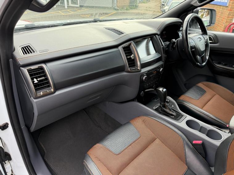 Boasting a full service history and an MOT valid until May 2026, this 2017 Ford Ranger 3.2 TDCi Wildtrak Auto 4WD Euro 5 4dr is ready for its next adventure. Powered by a robust 3.2 litre diesel engine and featuring a capable four wheel drive system, this Wildtrak variant is built to perform. It offers a substantial towing weight of 3500 kg, making it ideal for demanding tasks. For your peace of mind, a three month warranty is included.Inside, you'll find a host of convenient features designed for comfort and ease of use. Enjoy the warmth of front heated seats, stay connected with the Bluetooth handsfree phone system, and maintain the perfect cabin temperature with dual zone climate control. Parking is made simpler with rear parking sensors and a helpful rear view camera. These elements combine to offer a superior driving experience compared to other vehicles in its class..