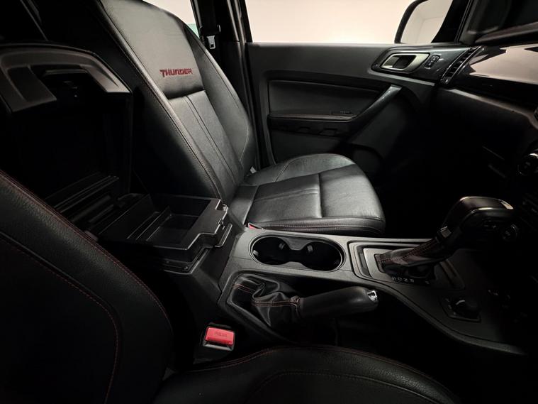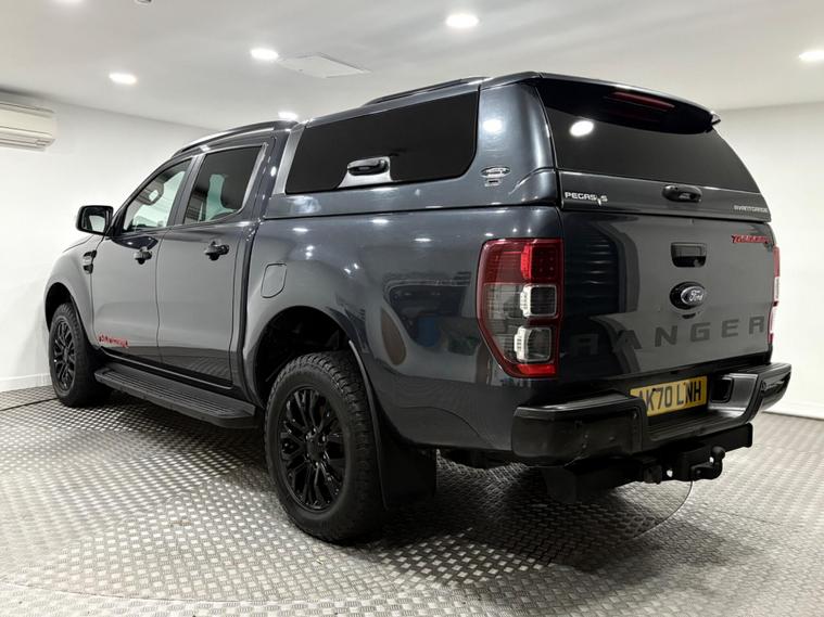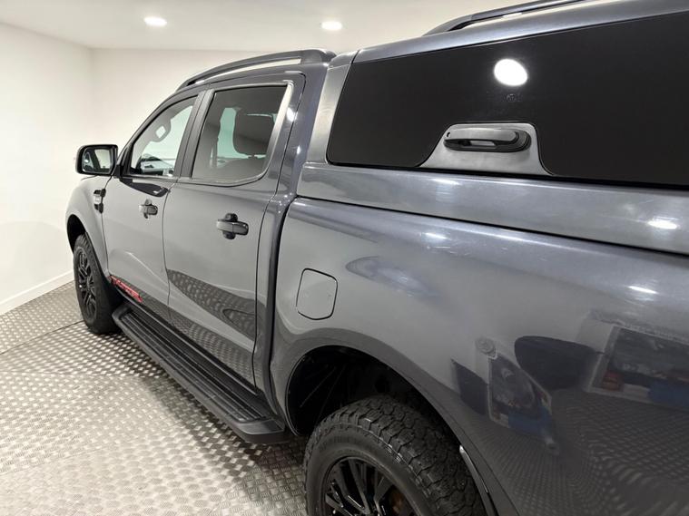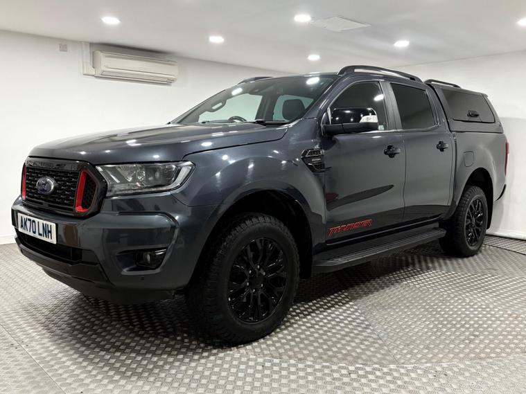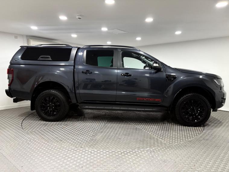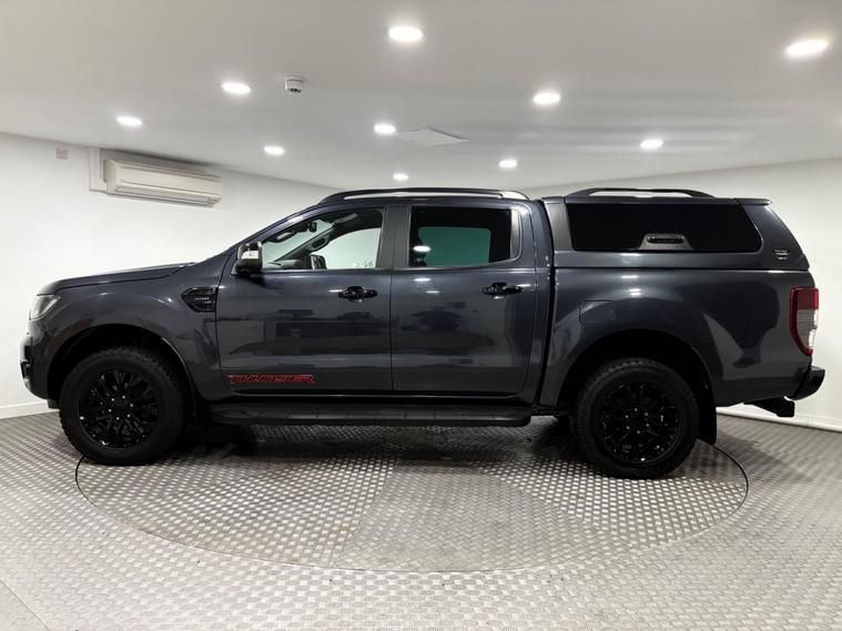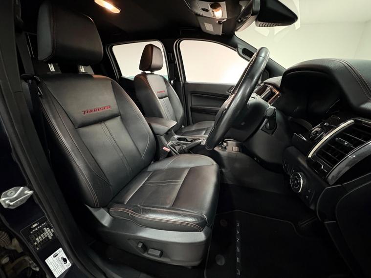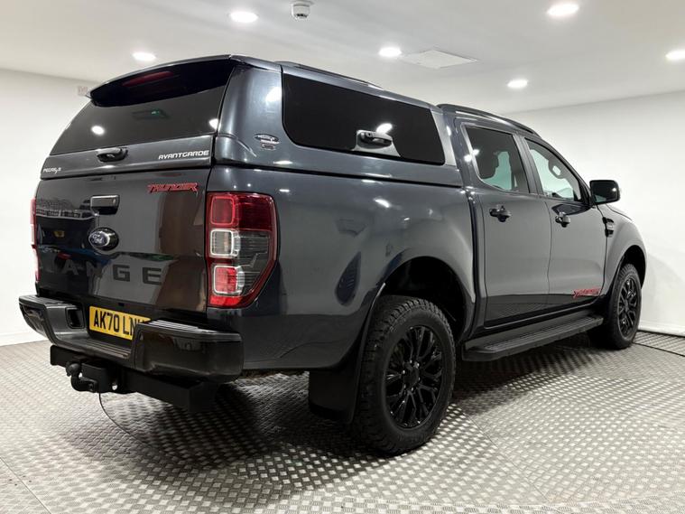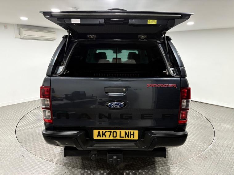 This 2020 Ford Ranger Thunder finished in Sea Grey with a black leather interior, the vehicle offers low mileage for its age, having covered just 46959 miles. This four wheel drive, 2.0 litre diesel pickup truck is presented in the Thunder trim and derivative, featuring a powerful 210 bhp engine. It meets Euro 6 emission standards and is equipped with manual air conditioning, a fixed rear view camera, rear parking sensors and front parking aid for enhanced manoeuvrability. Both the driver and passenger seats are heated, providing comfort in all conditions. The vehicle is complete with a Pegasus Canopy Back and a fixed tow bar.The vehicle is supplied with 2 keys and has had its first 2 services carried out at 12k, 25k in the Ford main dealer network.The Ranger Thunder is a capable vehicle, boasting a towing weight of 3500 kg, making it ideal for demanding tasks. Its Euro 6 compliant engine also contributes to low CO2 emissions, indicating a more environmentally conscious performance compared to many similar vehicles. The combination of its robust four wheel drive system, impressive engine power, and advanced parking assistance features makes this Ranger a well rounded and practical choice..