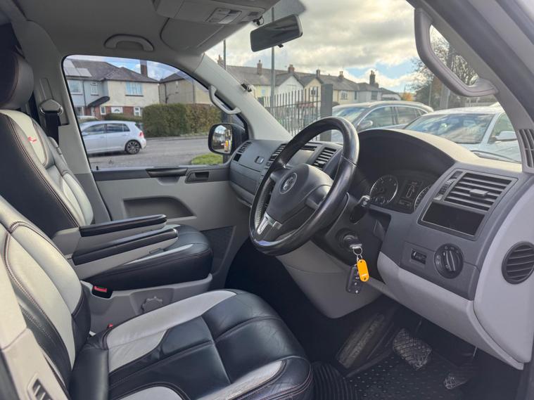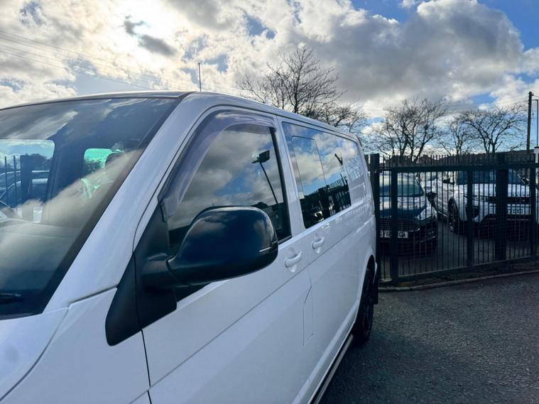 Welcome to HKO Vehicles Lyme Green.We are proud to present this outstanding 2012 (12) Volkswagen Transporter Sportline 2.0 BiTDI T32 Kombi DSG L1 H1 Crew Cab, finished in gloss white with the signature Sportline styling. As an AA Approved Dealer, every vehicle we offer comes with 12 months AA Breakdown Cover, a full service history, 12 months MOT, and finance options available for your convenience.This particular Transporter is a truly exceptional example. It has undergone a complete mechanical overhaul, including a fully rebuilt engine, reconditioned gearbox, and new twin turbos. The van drives and performs as good as new, offering excellent reliability, smooth performance, and long-term peace of mind for its next owner.Having covered 135, 000 miles and owned by just 3 previous keepers, this Sportline Kombi has been maintained to a very high standard. It features a crew cab layout with six seats, offering the perfect balance of passenger comfort and load-carrying practicality — ideal for both work and leisure.Inside, you’ll find a full-level leather sports interior, giving a premium and comfortable feel throughout. The Sportline specification adds a stylish edge with performance-inspired details and high-quality materials.Manufacturer Specifications & Features:	•	2.0 BiTDI Diesel Engine (Sportline Specification – 180ps)	•	DSG Automatic Transmission	•	Crew Cab with 6 Seats	•	Full-Level Leather Sports Interior	•	Sportline Body Kit and Styling Pack	•	18-inch Alloy Wheels	•	Dual Sliding Side Doors	•	Front Fog Lights and Daytime Running Lights	•	Air Conditioning / Climate Control	•	Touchscreen Infotainment System	•	Bluetooth Connectivity / AUX / USB	•	Cruise Control and Speed Limiter	•	Heated Front Seats	•	Rear Parking Sensors	•	Electric Windows and Mirrors	•	Tailgate Rear Door	•	ISOFIX Child Seat Mounting Points	•	ABS, Traction Control, and Multiple AirbagsEvery vehicle at HKO Vehicles is prepared to a high standard and undergoes a thorough pre-delivery inspection to ensure quality and reliability.Contact us today to arrange a viewing o.