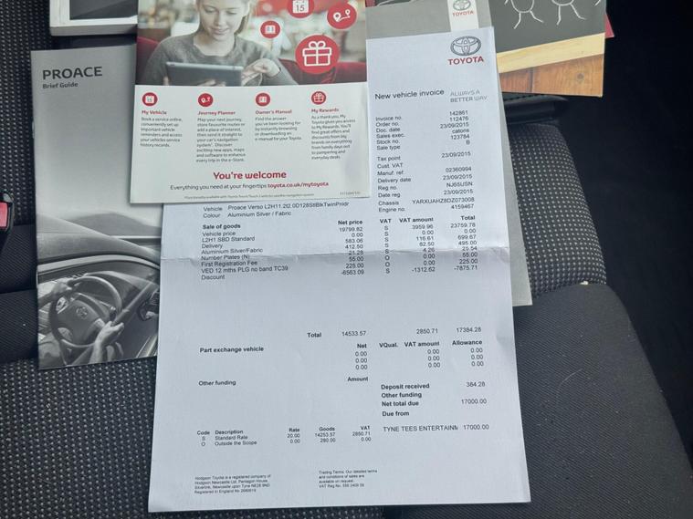dealer's website ESTABLISHED 1991 FOR MORE VAT FREE VANS AND PICKUPS.STUNNING LOW MILEAGE EXAMPLE WITH FULL SERVICE HISTORY WITH 8 STAMPS. *JUST ARRIVED AND AWAITING PREPERATION PHOTOS ADDED BY REQUEST SO A FEW THAT HAVE PHONED NO WHAT IT LOOKS LIKE*This 2015 Toyota ProAce presents a compelling proposition with its remarkably low mileage for its age, having covered just 72, 000 miles. This particular example is the 2.0 1200 HDi FWD L2 H1 5dr derivative, powered by a robust 2.0 litre diesel engine delivering an impressive 128 bhp. Benefiting from a full service history, this ProAce offers peace of mind with a 3 month warranty included.The 1200 HDi variant showcases its capability with a strong engine output, indicating a responsive driving experience. Its low mileage suggests less wear and tear compared to other vehicles of the same age, making it a potentially more reliable choice. This Toyota ProAce is a practical and well maintained option for those seeking a dependable commercial vehicle. *WE OFFER TOP PART EXCHANGE ALLOWANCE AND WILL GUARANTEE TO BEAT ANY CAR/VAN BUYING SITES OFFER *ALL OUR CARS AND VANS COME WITH OUR SALES PACKAGE THAT INCLUDES WARRANTY + SERVICE + MOT AND WITH OUR UNBEATABLE LOW RATE FINANCE PACKAGES WHAT MORE COULD YOU NEED.ALL OUR CARS AND VANS ARE ALSO HPI AND VOSA MOT HISTORY MILEAGE CHECKED FOR YOUR PEACE OF MIND THEN PREPARED IN OUR OWN ON SITE WORKSHOPS /CHOSEN INDEPENDENT PARTNERS AND COME WITH A FULL DETAILED VALET . WE HAVE UP TO 150 MORE CARS AND VANS ON OUR WEBSITE WITH STOCK CHANGING DAILY PLEASE VISIT OUR WEBSITE dealer's website FOR FULL UP TO DATE STOCK LIST AND CHECK AND COMPARE OUR PRICES BECAUSE WE DO DAILY !.