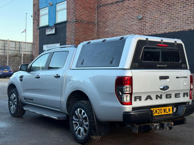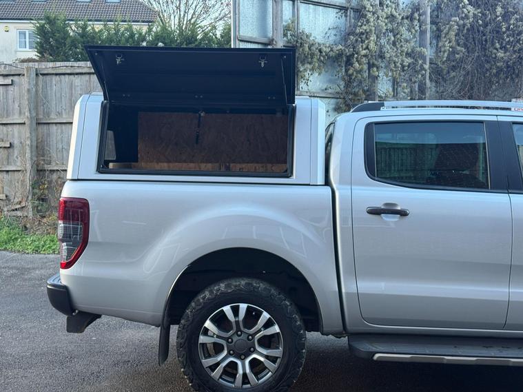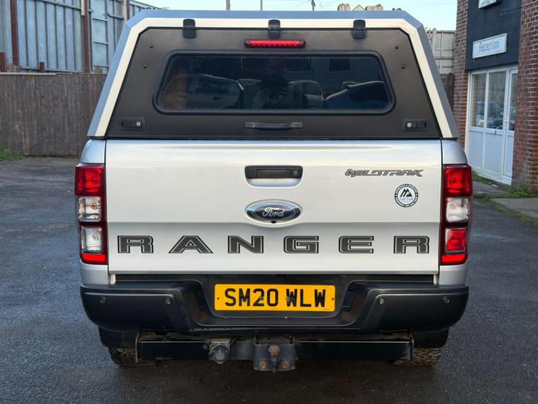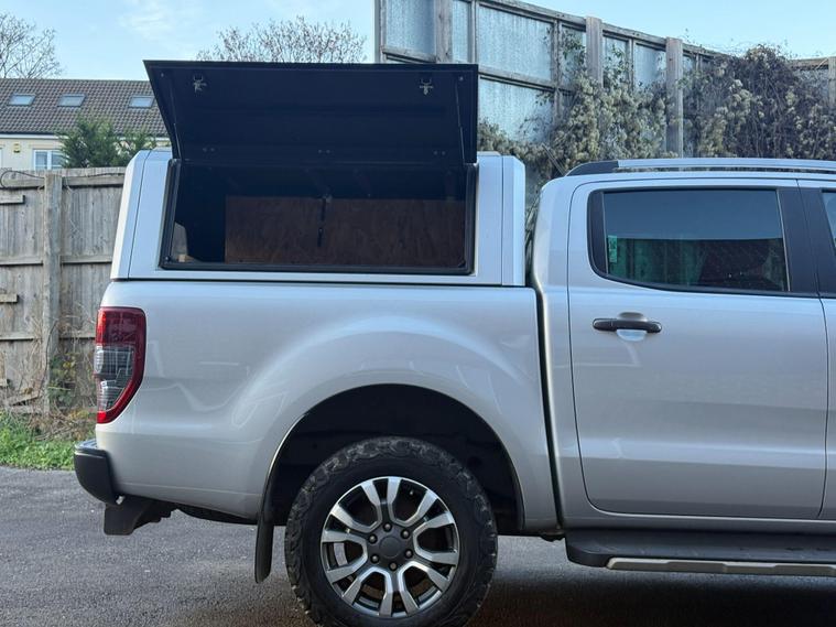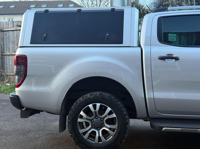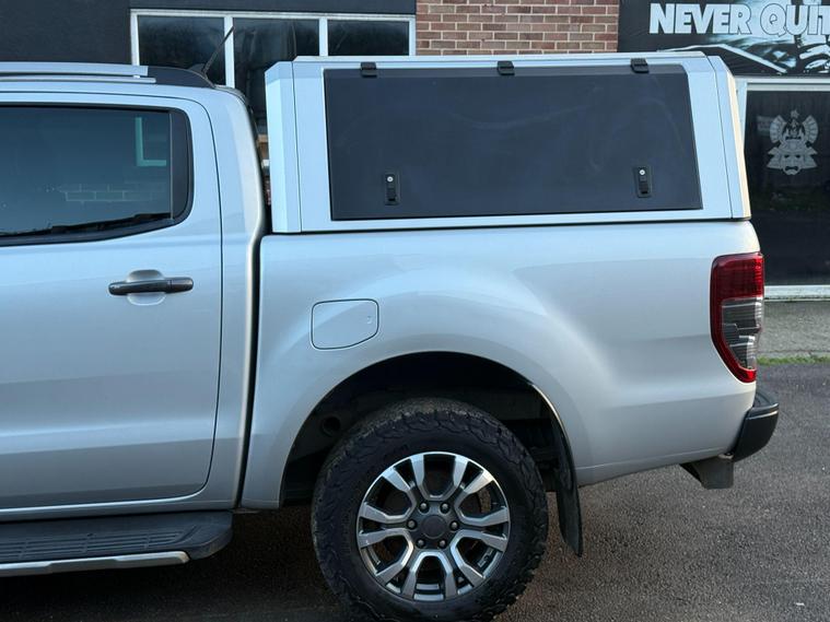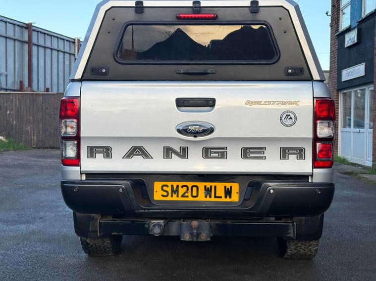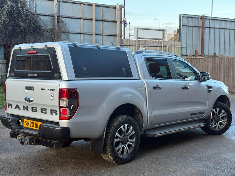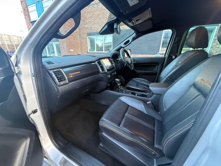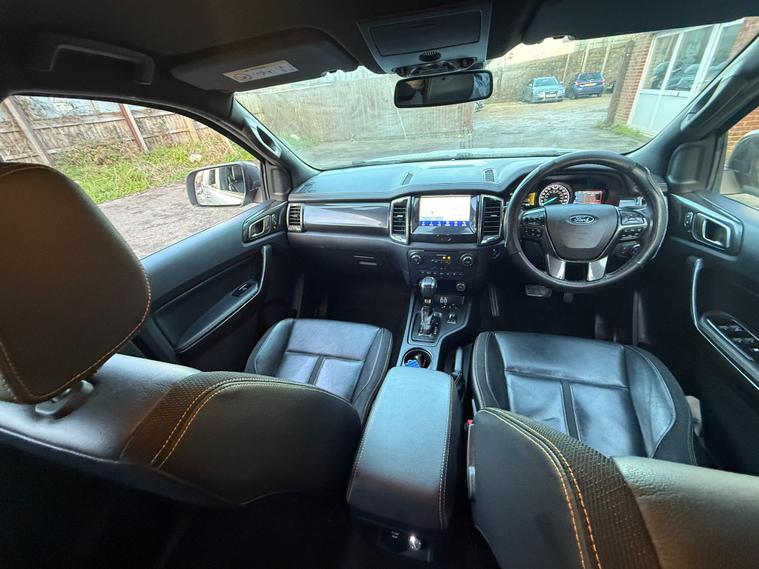 This 2020 Ford Ranger Wildtrak is a robust and capable vehicle, featuring a powerful 2.0 litre EcoBlue diesel engine that delivers an impressive 210 bhp. As a Four Wheel Drive model, it is well equipped for various terrains and conditions. The Wildtrak trim level ensures a high specification, and this particular example meets Euro 6 emission standards, contributing to lower CO2 emissions. For added convenience and safety, it includes LED headlights, a fixed rear view camera, front and rear parking aids, and heated front seats for driver and passenger comfort.The Ford Ranger Wildtrak stands out with its exceptional towing weight of 3500 kg, making it a superior choice for those needing to haul significant loads. Its Euro 6 compliant engine not only signifies adherence to environmental standards but also indicates a more efficient performance compared to older models. The combination of its substantial towing capacity, powerful 210 bhp engine, and advanced parking assistance systems positions this Ranger as a highly practical and well appointed vehicle for both work and leisure..