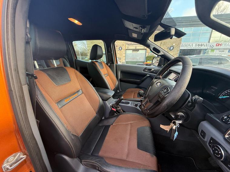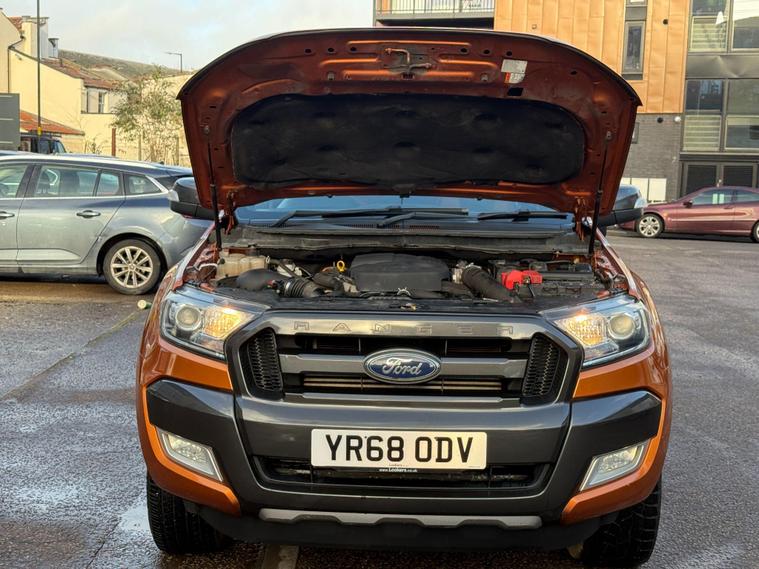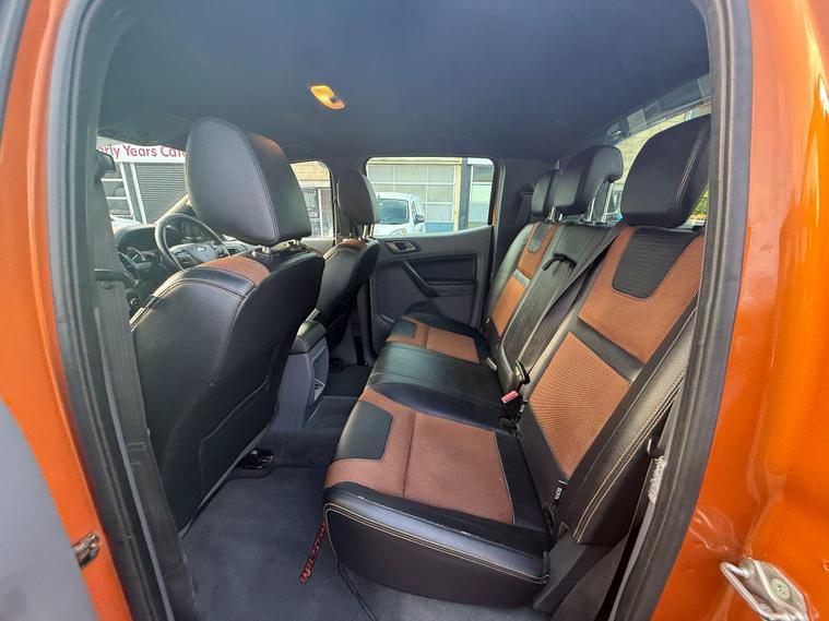 This 2018 Ford Ranger 3.2 TDCi Wildtrak 4WD offers impressive capability with its robust 3.2 litre diesel engine and four wheel drive system, making it ready for any challenge. This particular Wildtrak derivative is equipped with rear parking sensors to aid manoeuvring, and a gearshift indicator light to help optimise fuel efficiency. Inside, you will find dual zone climate control for personalised comfort, heated front seats for those colder days, and Bluetooth connectivity for seamless audio streaming and calls.The Ranger Wildtrak stands out with its substantial 3500 kg towing weight, demonstrating its superior strength and versatility compared to many other vehicles in its class. This Ford Ranger is designed to provide a comfortable and convenient driving experience, whether for work or leisure, with features that enhance both practicality and enjoyment on every journey..