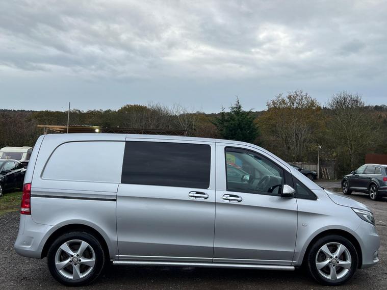 This 2017 Mercedes Benz Vito 119 CDI Sport Crew Van is a prime example of a well maintained and capable vehicle. Powered by a robust 2.1L diesel engine, this Euro 6 compliant model offers efficient performance. It comes equipped with desirable features such as Bluetooth connectivity for both hands-free calls and audio streaming, ensuring you stay connected on the go. The Tempmatic air conditioning system provides automatic climate control for a comfortable cabin environment, while Headlamp Assist automatically activates the headlights, enhancing safety and convenience.The Vito 119 CDI Sport derivative stands out with its Sport trim, offering a refined driving experience. The G-Tronic+ automatic transmission and rear-wheel drive ensure smooth power delivery and confident handling. This Crew Van variant is designed for versatility, providing ample space for both passengers and cargo. Its Euro 6 emission classification means it meets stringent environmental standards, making it a responsible choice for businesses and individuals alike..