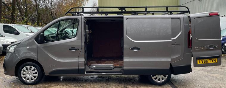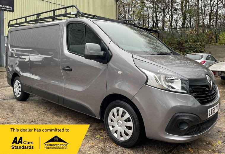 MOT UNTIL 14/11/2026. 12 MONTHS WARRANTY INCLUDED. 12 MONTHS AA BREAKDOWN COVER INCLUDED. ALL INSPECTIONS/TEST DRIVES ARE WELCOME. EXTENDED WARRANTIES FOR UP TO 36 MONTHS AVAILABLE. NATIONWIDE DELIVERY AVAILABLE. ALL PART EXCHANGE VEHICLES ARE CONSIDERED. OPEN 7 DAYS A WEEK. PLEASE CALL US TO DISCUSS FURTHER DETAILS OR VISIT OUR WEBSITE dealer's website 2016 Renault Trafic presents a superb ownership opportunity, having been meticulously maintained by just one owner from new. This Business+ LWB Standard Roof model is powered by an efficient 1.6 litre dCi diesel engine, meeting Euro 6 emissions standards. For enhanced safety and convenience, it includes a Wide View Mirror with Blind Spot Assistance, rear parking sensors for easier manoeuvring, and a DAB radio with Bluetooth connectivity, USB socket, and two speakers. Comfort is assured with manual air conditioning and a pollen filter, making every journey a pleasant experience.The Trafic Business+ boasts an impressive cargo volume of 6000 litres, offering ample space for all your business needs. Its low insurance group rating further adds to its appeal, indicating lower running costs compared to similar vehicles. This combination of a single owner, generous cargo capacity, and practical features makes this Renault Trafic a sensible and cost effective choice for any professional..
