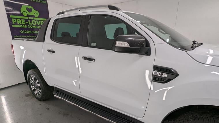 This 2020 Ford Ranger Wildtrak boasts a single owner from new and a clear vehicle history check, offering peace of mind. Powered by a robust 3.2L TDCi diesel engine and featuring Four Wheel Drive, this Euro 6 compliant model is ready for any challenge. It comes with a 3 month warranty and a 12 month MOT provided on purchase, alongside partial service history, with the last service recorded at 70402 miles. Notable features include front and rear parking assistance with sensors and a rear camera, manual air conditioning, and passive keyless entry and start.The Wildtrak derivative is designed for capability and convenience, with a substantial towing weight of 3500 kg. Its comprehensive parking aids and keyless entry system highlight its advanced specification, setting it apart from other vehicles in its class. This Ranger is a well maintained example, offering a blend of performance and practical features for a variety of uses..