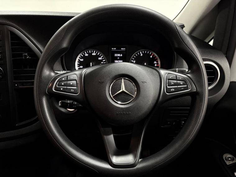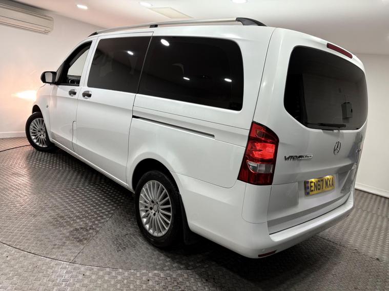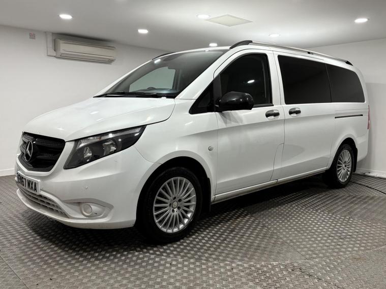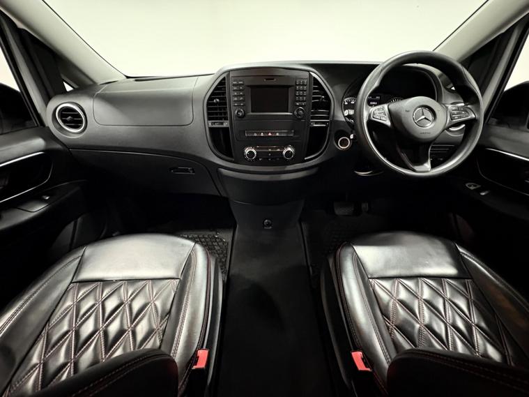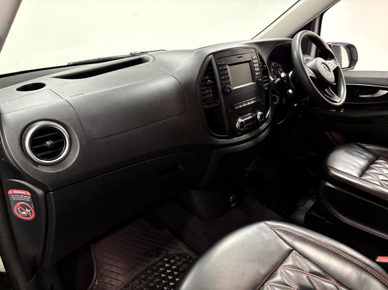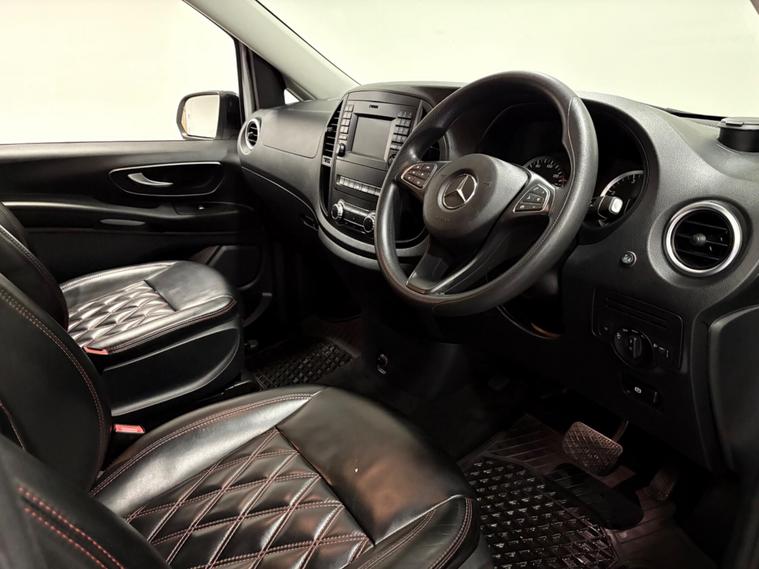 This Mercedes Benz Vito has previously been supplied by ourselves, this one has not been used as a taxi. Finished in white with black leather interior, supplied with 2 keys and will have a fresh MOT and service as part of our internal preparation. As a Euro 6 compliant vehicle, it meets stringent emission standards, making it an environmentally conscious choice. The SELECT trim level ensures a well equipped interior, featuring Tempmatic automatic climate control for consistent cabin comfort, and Headlamp Assist for automatic activation of headlights.For seamless connectivity, this Vito boasts Bluetooth functionality, allowing for both hands free telephone calls and audio streaming. These features, combined with the vehicle's robust Mercedes Benz engineering, highlight its superior comfort and convenience compared to other vehicles in its class. The long wheelbase (L2) designation further indicates ample interior space, ideal for passengers or cargo.SpecificationsThe data displayed above details the usual specification of the most recent model of this vehicle. It is not the exact data for the actual vehicle being offered for sale and data for older models may vary slightly. We recommend you check the vehicle details with your sales advisor before you buy..
