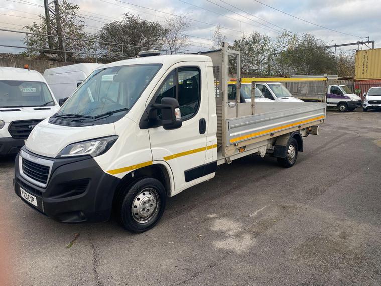 This 2021 Peugeot Boxer 2.2 BlueHDi 335 is Built for Business. Its got a lovely long drop side body, towbar, and reversing camera. Its L3 Euro 6 (s/s) and presents an exceptional ownership proposition, having been meticulously maintained by a single owner from new. With a low mileage of just 56, 801 miles for its age, this Euro 6 compliant diesel van is ready for its next chapter. It comes with a 12 month warranty and a 12 month MOT provided on purchase, offering peace of mind. Inside the cab is mint and you'll find air conditioning for your comfort, a handy glovebox, and a DAB radio complete with steering mounted controls, Bluetooth handsfree, and a USB socket for all your connectivity needs.The powerful 2.2 litre BlueHDi diesel engine delivers an impressive 163 bhp, providing ample performance for any task. This engine's efficiency is further enhanced by its Euro 6 compliance, meaning lower emissions. The low insurance group rating for this model indicates that running costs are likely to be more affordable compared to similar vehicles..