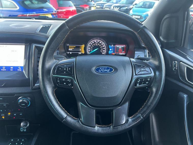 This 2021 Ford Ranger MS-RT Pickup Double Cab boasts a full service history, offering peace of mind for its next owner. This 2.0 litre diesel automatic 4WD model, with its Euro 6 compliant engine producing 213 ps, is presented in the desirable MS-RT trim. Notable features include the Wildtrak Driver Assistance Pack, complete with adaptive cruise control and a head up display, alongside front parking aid and passive keyless entry and start. For added comfort, both the driver and passenger seats are heated, and the vehicle is equipped with LED headlights.The Ranger MS-RT stands out with its impressive 210 bhp engine, indicating a superior performance compared to other vehicles in its class. The combination of four wheel drive capability and the advanced driver assistance systems ensures a confident and comfortable driving experience, whether for work or leisure. This pickup truck offers a compelling blend of rugged utility and refined features, making it a practical and appealing choice..