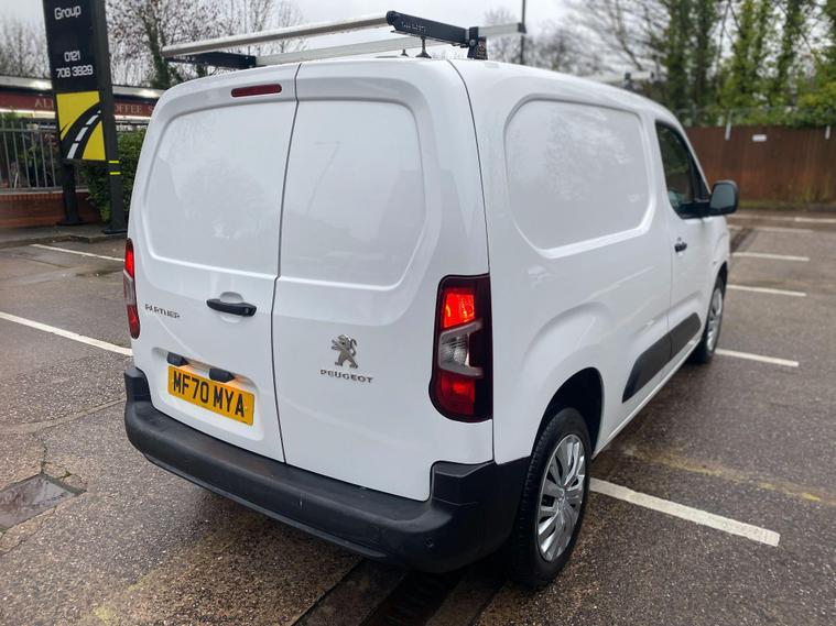 This 2020 Peugeot Partner van boasts an exceptional provenance, having been owned by only one careful keeper from new and benefiting from a full service history. This 1.5 BlueHDi 1000 Professional Standard Panel Van SWB Euro 6 (s/s) 5dr model is equipped with a reliable 1.5 litre diesel engine and meets Euro 6 emissions standards. Inside, you'll find the PEUGEOT i-Cockpit featuring a head up display and compact steering wheel, alongside an 8in capacitive colour touchscreen with DAB radio, Bluetooth handsfree, and USB connectivity. Practicality is enhanced with rear parking sensors, height adjustable halogen headlights with automatic illumination and daytime running lights, and air conditioning. A 12 month warranty is included for your peace of mind.This Professional trim Partner offers impressive efficiency, achieving a highlight fuel economy of 54 mpg and producing low CO2 emissions, making it an economical choice for your business. Its generous 3900 litre cargo volume provides ample space for your goods, while the low mileage of just 58232 miles for its age indicates it has been well looked after. These factors combined suggest this Peugeot Partner is a superior option compared to other similar vans on the market, offering a blend of efficiency, practicality, and excellent condition..