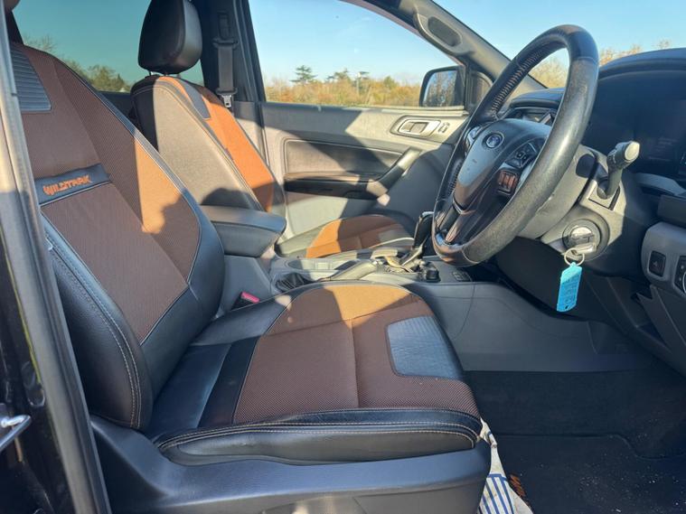 This 2018 Ford Ranger 3.2 TDCi Wildtrak Auto 4WD is presented with a clear vehicle history check, offering peace of mind for its next owner. This robust Wildtrak derivative is equipped with a powerful 3.2 litre diesel engine and a four wheel drive system, making it ready for a variety of tasks. For convenience and safety, it features automatic headlights, rear parking sensors, and a rear view camera. Stay connected on the go with both Bluetooth audio streaming and handsfree phone system capabilities.The Wildtrak trim level signifies a higher specification, indicating this Ranger offers enhanced features compared to other similar models. Its impressive 3500 kg towing weight capacity further underlines its capability for demanding jobs. This 2018 Ford Ranger is a well equipped and dependable choice for those seeking a versatile and capable vehicle..