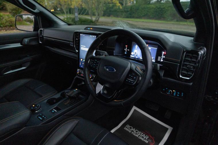 THIS 2023 FORD RANGER WILDTRAK BOASTS A FULL DEALERSHIP SERVICE HISTORY FROM ITS SINGLE OWNER, ENSURING EXCELLENT PROVENANCE. THIS IMPRESSIVE 4X4 PICKUP FEATURES A POWERFUL 2.0L ECOBLUE DIESEL ENGINE DELIVERING 202 BHP, PAIRED WITH A SMOOTH AUTOMATIC TRANSMISSION. THE WILDTRAK TRIM OFFERS A HOST OF DESIRABLE FEATURES, INCLUDING ELECTRONIC AUTOMATIC AIR CONDITIONING WITH CLIMATE CONTROL, HEATED FRONT SEATS, AND A HEATED STEERING WHEEL FOR ULTIMATE COMFORT. FOR PRACTICALITY, IT COMES EQUIPPED WITH A TRAILER TOW CLASS 1 INCLUDING A TOWBAR, CAPABLE OF TOWING UP TO 3500 KG, AND BENEFITS FROM PASSIVE KEYLESS ENTRY AND START.THE FORD RANGER WILDTRAK IS DESIGNED FOR BOTH WORK AND LEISURE, OFFERING A EURO 6 COMPLIANT ENGINE THAT CONTRIBUTES TO ITS LOW CO2 EMISSIONS. ITS FUEL ECONOMY IS A NOTABLE HIGHLIGHT, ACHIEVING AN IMPRESSIVE 32 MPG, WHICH INDICATES IT IS MORE ECONOMICAL THAN MANY SIMILAR VEHICLES. THE COMBINATION OF ITS ROBUST FOUR WHEEL DRIVE SYSTEM, SUBSTANTIAL TOWING CAPACITY, AND THE COMPREHENSIVE SERVICE HISTORY FROM A SINGLE OWNER MAKES THIS RANGER A COMPELLING CHOICE FOR THOSE SEEKING A CAPABLE AND WELL MAINTAINED PICKUP..