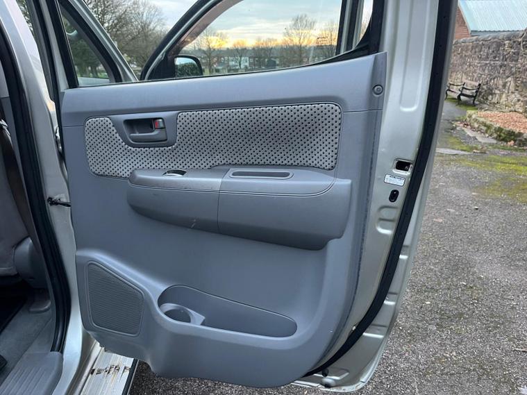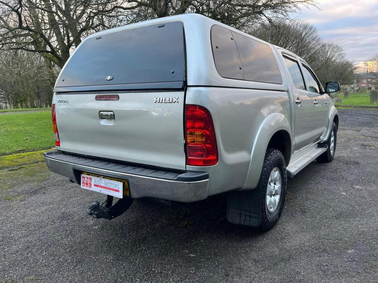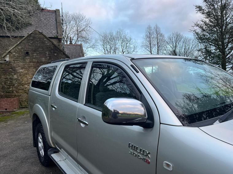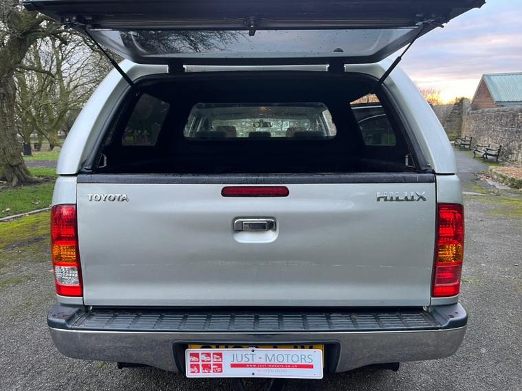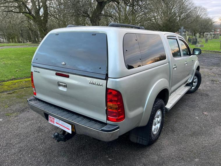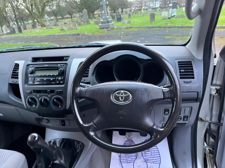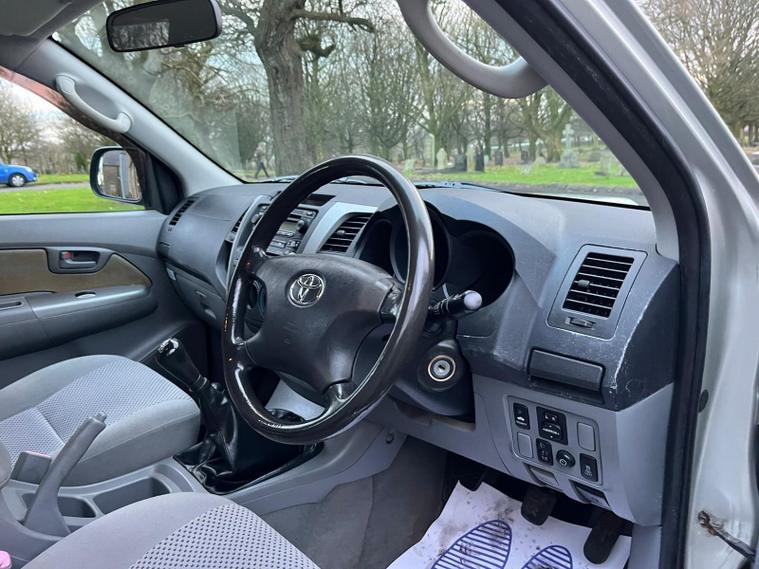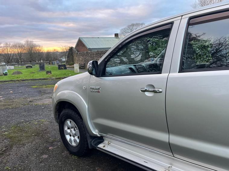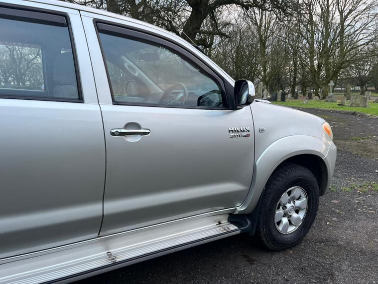 TOYOTA HILUX 3.0 D-4D HL3 IN A SILVER EXTERIOR COLOUR WITH GREY CLOTH INTERIOR... COMES WITH A LONG MOT... NO VAT INCLUDED... COMES WITH SERVICE HISTORY... FEATURING 4 WHEEL DRIVE SYSTEM... ROOF BARS... TOW BAR... PRIVACY GLASS... FOG LIGHTS... POWER HEAT ENGINE... FUEL CAP RELEASE LEVER... FM CD RADIO... CLIMATE CONTROL WITH REAR HEATED WINDOW... POP OUT DAH CUP HOLDERS... ELECTRIC ADJUSTABLE SIDE MIRRORS... HEADLIGHT ADJUSTMENT CONTROL...ALL ROUND ELCTRIC WINDOWS... CENTRAL LOCKING DOOR CONTROL... ALLOY WHEELS WITH DECENT TREAD ALL ROUND... WARRANTY INCLUDED... ALL PART EXCHANGES ARE WELCOME... OPTIONAL NATION WIDE DELIVERY EXTRA... BOOK-INS AND VIDEO VIEWINGS ARE AVAILABLE... TEST DRIVES ARE WELCOME... FOR MORE INFORMATION CALL US TODAY ON 01616232309..