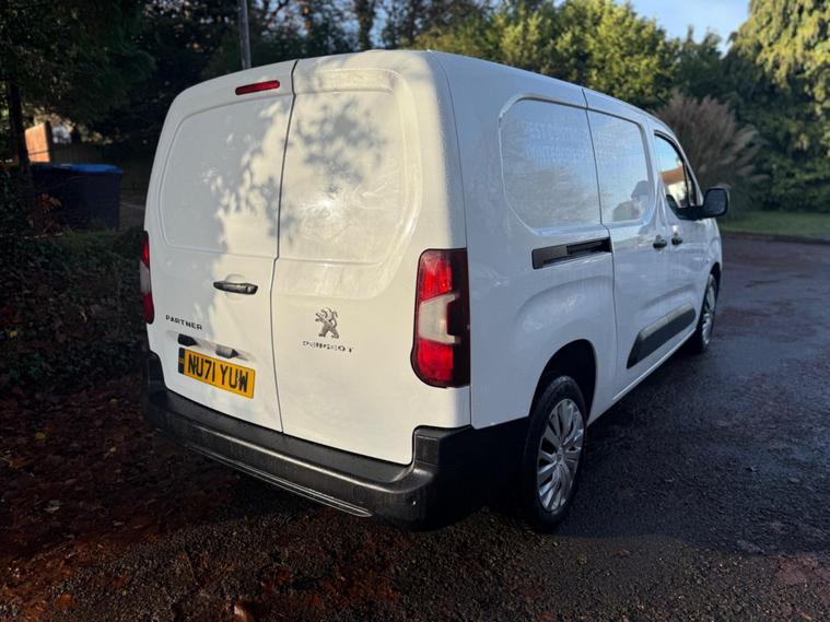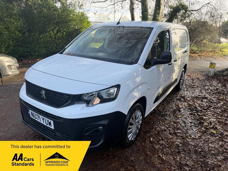 FSH AA WARRANTY 1 YEARS AA MEMBERSHIP FINANCE ARRANGED EXTRA LONG BODY This 2021 Peugeot Partner van boasts a single owner and a full service history, offering excellent provenance for its next owner. As a 1.5 BlueHDi 950 Professional Premium Long Panel Van LWB Euro 6 model, it combines a 1.5 litre diesel engine with a Euro 6 emission class. This Professional Premium trim level comes equipped with practical features such as twin sliding side doors, including an offside sliding door, and height adjustable halogen headlights with automatic illumination and daytime running lights. Inside, you'll find air conditioning for comfort and an 8 inch capacitive colour touchscreen with Connect DAB Radio, Bluetooth handsfree, and a USB socket.This Peugeot Partner is designed for efficiency and practicality, with a fuel economy of 56 mpg and a generous cargo volume of 4400 litres, indicating it is better equipped for longer journeys and larger loads than many similar vehicles. Its low CO2 emissions further highlight its environmental consideration. To provide peace of mind, the vehicle comes with a 6 month warranty and a 12 month MOT will be provided on purchase, ensuring its roadworthiness..