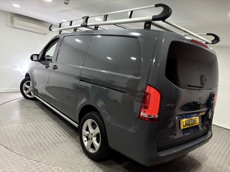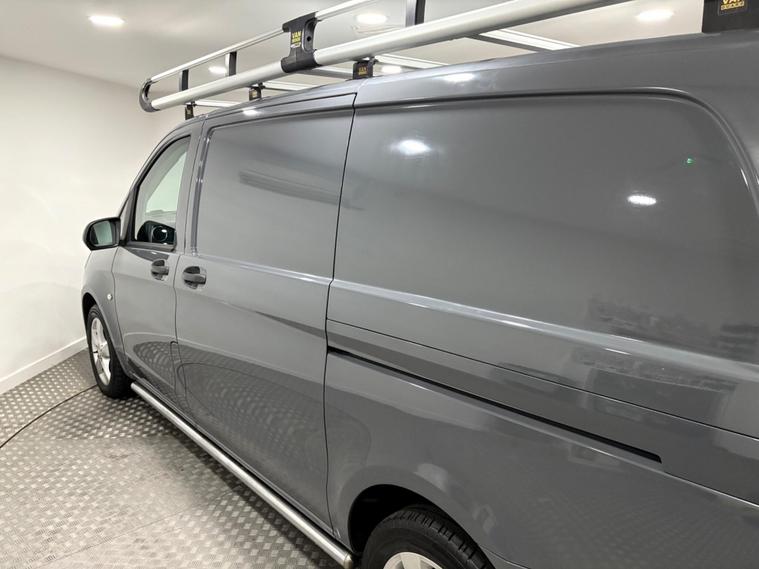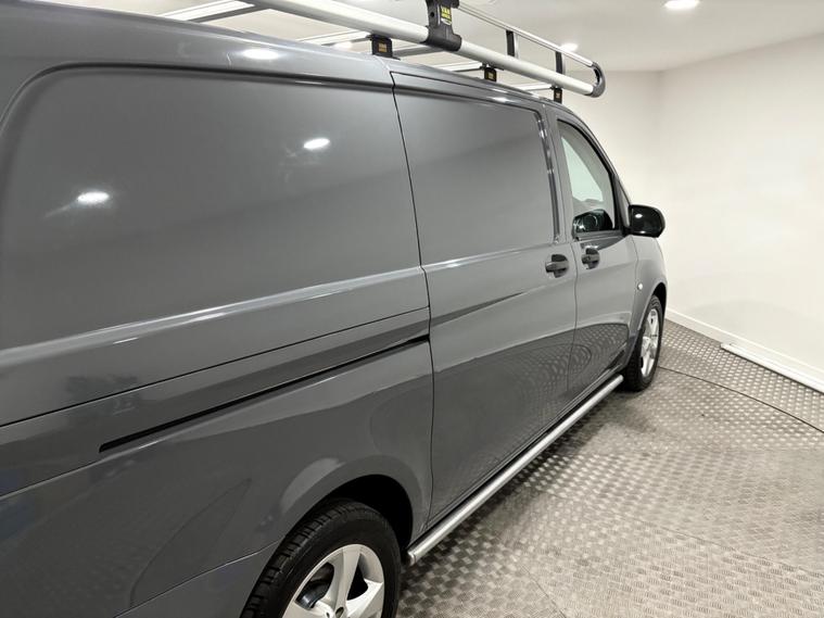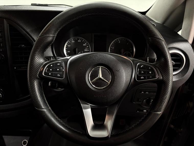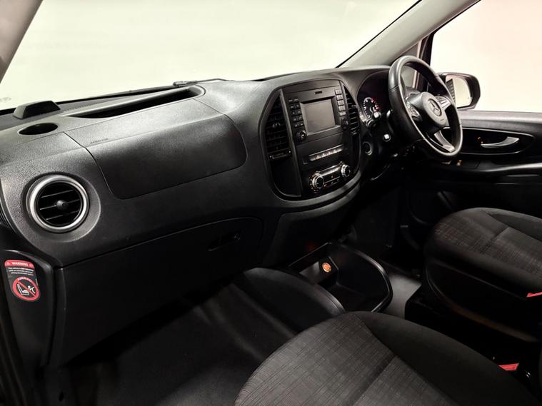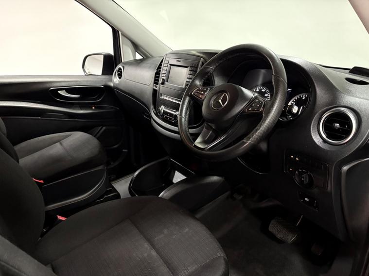 This 2018 Mercedes Benz Vito 119 CDI Sport offers a compelling blend of performance and practicality, making it an excellent choice for discerning buyers. As a Euro 6 compliant model, it meets stringent emission standards. This rear wheel drive L2 variant boasts a powerful 2.1 litre diesel engine delivering an impressive 187 bhp, ensuring ample power for any task. The Sport trim level signifies a higher specification, enhancing the overall driving experience including parking sensors front and rear including a camera, Bluetooth connection and electric folding mirrors. The vehicle has a fitted roof rack and the back of the van has been fitted with wooden shelves on either side to help with storage.The vehicle is supplied with 2 keys and will have a full inspection in our workshop which will include a service and a fresh MOT.With a generous cargo volume of 6300 litres, this Vito is exceptionally well equipped to handle substantial loads. Its fuel economy is also noteworthy, achieving up to 47 mpg, which contributes to lower running costs. Furthermore, its low insurance group rating means that insuring this capable vehicle is more affordable. These highlights collectively demonstrate the Vito's superior value and efficiency compared to other vehicles in its class..