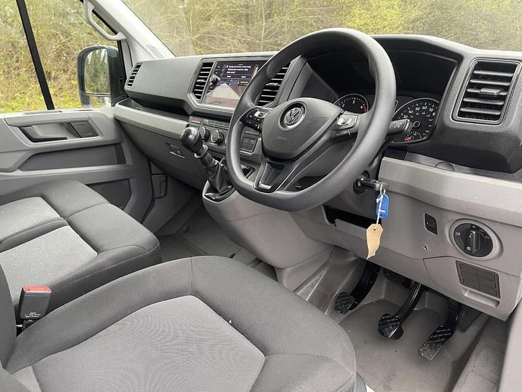 This 2021 Volkswagen Crafter presents an exceptional ownership proposition, boasting a full service history and having been meticulously maintained by only one owner. Powered by a robust 2.0 litre TDI diesel engine, this Euro 6 compliant model offers a substantial towing weight of 3000 kg, making it a capable workhorse. The Trendline trim level ensures a comfortable and functional driving experience, complemented by front and rear parking sensors with parking assistance, and the Composition Media system featuring DAB+ radio and an 8 inch touchscreen with Bluetooth connectivity.With an impressive cargo volume of 14400 litres, this Long Wheel Base High Roof Crafter is designed to maximise your carrying capacity, setting it apart from many other vehicles in its class. The inclusion of a 12 month MOT upon purchase and a 3 month warranty provides added peace of mind for the new owner. This vehicle represents a well cared for and well equipped option for those seeking a reliable and spacious commercial van..