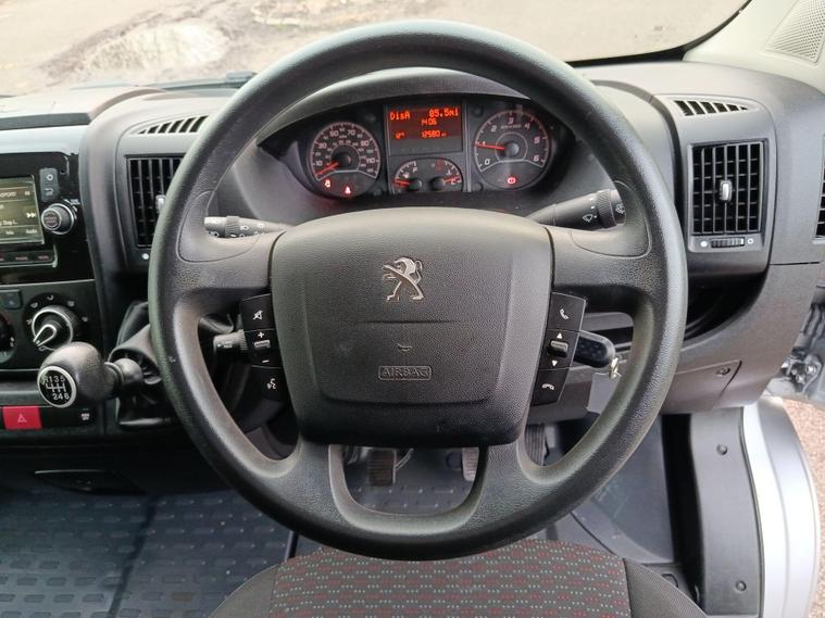 This 2022 Peugeot Boxer presents an exceptional opportunity with its remarkably low mileage of just 12, 579 miles, especially for a vehicle of its age. As a 2.2 BlueHDi 335 Professional L2 H2 Euro 6 (s/s) 5dr model, it boasts a 2.2 litre diesel engine and meets Euro 6 emission standards. This van comes with the assurance of a 12 month warranty and a 12 month MOT provided on purchase, alongside a full service history and a clear vehicle history check, confirming its excellent provenance. It has had only one owner since new.The Professional trim level includes a Touch Screen Navigation Pack with Bluetooth connectivity, ensuring you stay connected and on course. For driver comfort, it features manual air conditioning for the cab area, including a cooled glovebox. The low insurance group rating further enhances its appeal, indicating that this Peugeot Boxer offers a more economical ownership experience compared to similar vehicles..