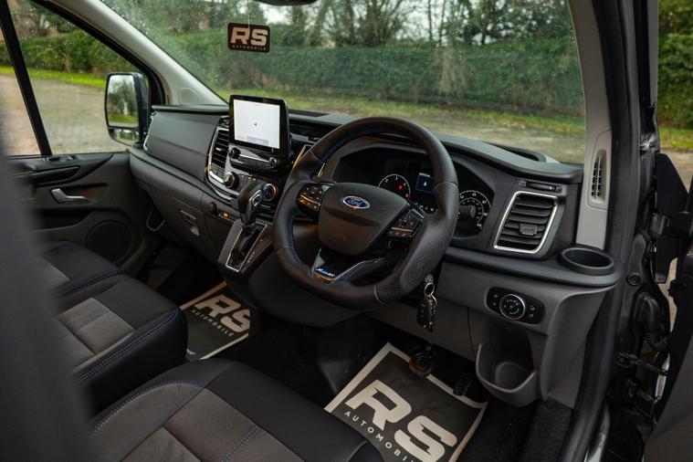 THIS 2023 FORD TRANSIT CUSTOM MS-RT CREW VAN BOASTS A FULL SERVICE HISTORY AND HAS HAD ONLY ONE OWNER FROM NEW. THIS L2 H1 EURO 6 COMPLIANT MODEL FEATURES A POWERFUL 2.0 LITRE 168 BHP ECOBLUE DIESEL ENGINE AND AN AUTOMATIC TRANSMISSION, OFFERING A SMOOTH AND EFFICIENT DRIVING EXPERIENCE. ITS MS-RT TRIM LEVEL ENHANCES ITS ALREADY IMPRESSIVE SPECIFICATION, INCLUDING A DIGITAL REAR VIEW MIRROR WITH PARKING ASSISTANCE AND A REAR CAMERA, AUTOMATIC HEADLIGHTS WITH A FOLLOW ME HOME FUNCTION, AND A COMPREHENSIVE VISIBILITY PACK.THE FORD TRANSIT CUSTOM MS-RT IS DESIGNED TO IMPRESS, WITH FRONT AND REVERSE PARKING AIDS THAT UTILISE FRONT AND REAR SENSORS FOR CONFIDENT MANOEUVRING. ITS LOW CO2 EMISSIONS ARE A NOTABLE ADVANTAGE, INDICATING A MORE ENVIRONMENTALLY CONSCIOUS PERFORMANCE COMPARED TO SIMILAR VEHICLES. THIS WELL MAINTAINED, SINGLE OWNER VEHICLE REPRESENTS A COMPELLING CHOICE FOR THOSE SEEKING A CAPABLE AND FEATURE RICH CREW VAN..