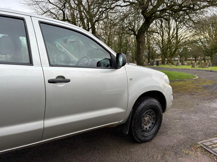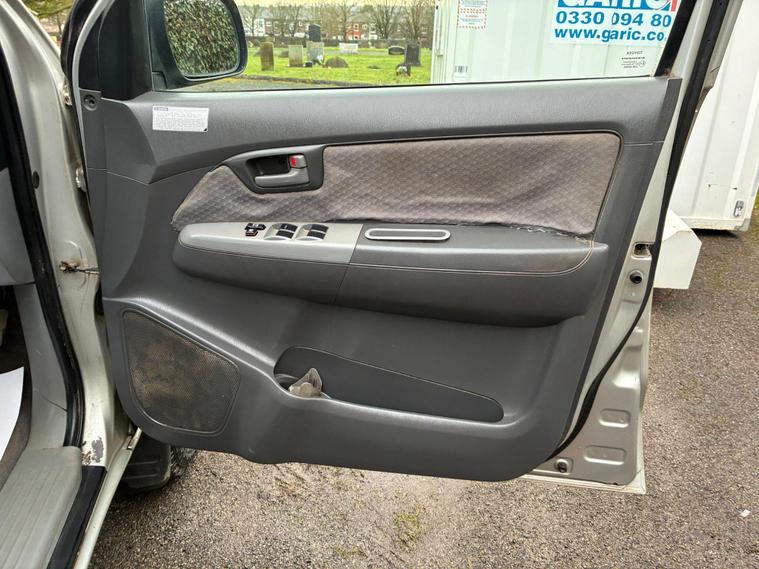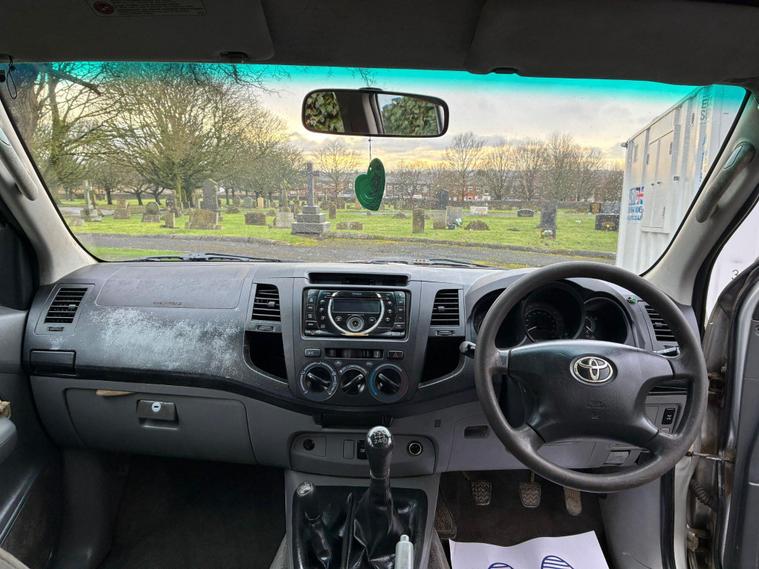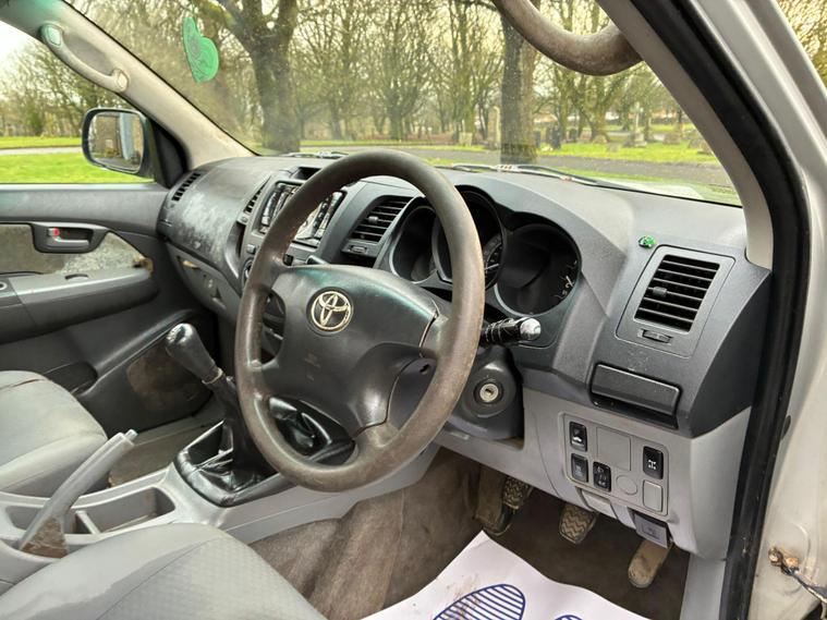 TOYOTA HILUX 2.5 D-4D HL2 4WD IN A SILVER EXTERIOR COLOUR WITH GREY CLOTH INTERIOR... WILL COME WITH 12 MONTHS MOT... NO VAT... SERVICE HISTORY... FEATURING TOWBAR... POWER HEAT ENGINE CONTROL... 4WD SYSTEM CONTROL... FM CD RADIO WITH A AUX PORT... FOG LIGHT... CLIMATE CONTROL WITH REAR HEATED WINDOW... FUEL CAP RELEASE LEVER... POP OUT DASH CUP HOLDERS... ALL ROUND ELECTRIC WINDOWS... HEADLIGHT ADJUSTMENT CONTROL... CENTRAL LOCKING DOOR CONTROLS... ALLOY WHEELS WITH DECENT TREAD ALL ROUND... WARRANTY INCLUDED... ALL PART EXCHANGES ARE WELCOME... OPTIONAL NATIONWIDE DELIVERY EXTRA... BOOK-INS AND VIDEO VIEWINGS ARE AVAILABLE... TEST DRIVES ARE WELCOME... FOR MORE INFORMATION CALL US TODAY ON 01616232309..