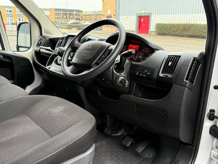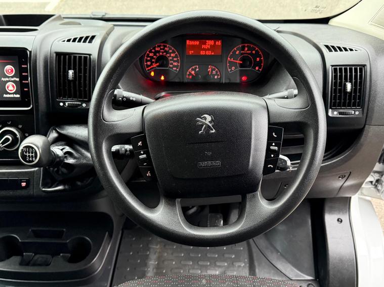 This 2023 Peugeot Boxer 2.2 BlueHDi 335 Professional Premium + L3 H2 Euro 6 (s/s) 5dr offers a superb blend of capability and modern convenience. Powered by an efficient 2.2 litre BlueHDi diesel engine, this Euro 6 compliant van is designed for reliable performance. The Professional Premium + trim level ensures you benefit from a host of useful features, including a comprehensive Touch Screen Navigation Pack with Android Auto and Apple CarPlay for seamless connectivity, and Bluetooth for handsfree calls. Manoeuvring is made easier with rear parking sensors and parking assistance, while the manual air conditioning for the cab area, including the glovebox, ensures a comfortable working environment.This particular Peugeot Boxer stands out with its low insurance group, indicating a more cost effective ownership proposition compared to similar vehicles. The inclusion of the Professional Premium + trim signifies a higher specification, offering enhanced comfort and technology for your daily operations. Its Euro 6 rating also means it meets the latest emissions standards, contributing to cleaner air..