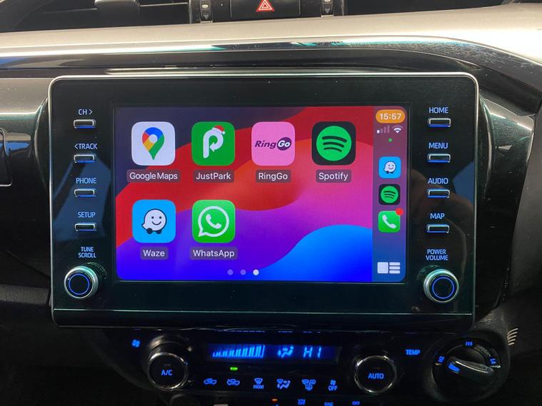 ULEZ COMPLIANT|2 KEYS |DIESEL| AUTOMATIC | KEYLESS ENTRY |INVINCIBLE |REVERSE CAMERA | PARKING SENSORS |FOUR WHEEL DRIVE | TOW BAR | ELECTRIC MIRRORS | VOICE COMMAND | LANE ASSIST | CRUISE CONTROL | AUTO HEADLIGHTS | ECO MODE | POWER MODE | AC | START STOP FUNCTION | HEATED DRIVER & PASSANGER SEAT | RADIO AM, FM DAB | BLUETOOTH | MIRACAST | USB | APPLE CAR PLAY | ANDROID AUTO |HPI CLEAR |FREE AA BREAKDOWN COVER WITH ALL PURCHASES|FINANCE & WARRANTY AVAILABLE|DELIVERY AVAILABLE NATIONWIDE | £99 ADMIN FEEToyota Hilux Invincible is presented with a clear vehicle history check, offering you peace of mind. This robust four wheel drive pickup is powered by a capable 2.8 litre diesel engine, delivering 201 bhp and meeting Euro 6 emission standards. The Invincible trim level ensures a premium experience, featuring a Smart Entry and Smart Start System for effortless access and ignition. The Hilux Invincible is equipped with Intelligent Adaptive Cruise Control, which helps maintain a set speed and distance from the vehicle ahead, and LED headlights for improved visibility. Parking is made simpler with a rear view camera, and you can stay connected on the go thanks to smartphone integration, including Apple CarPlay and Android Auto. With a substantial towing weight of 3500 kg, this Hilux is ready for demanding tasks, showcasing its superior capability compared to similar vehicles..